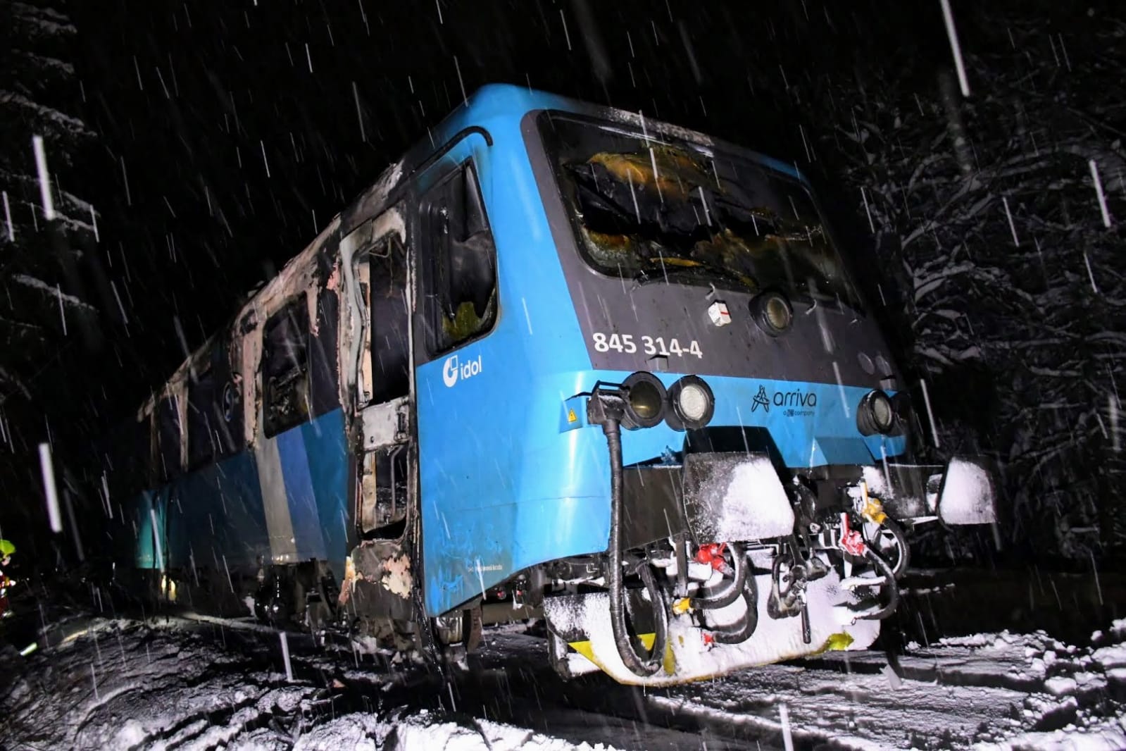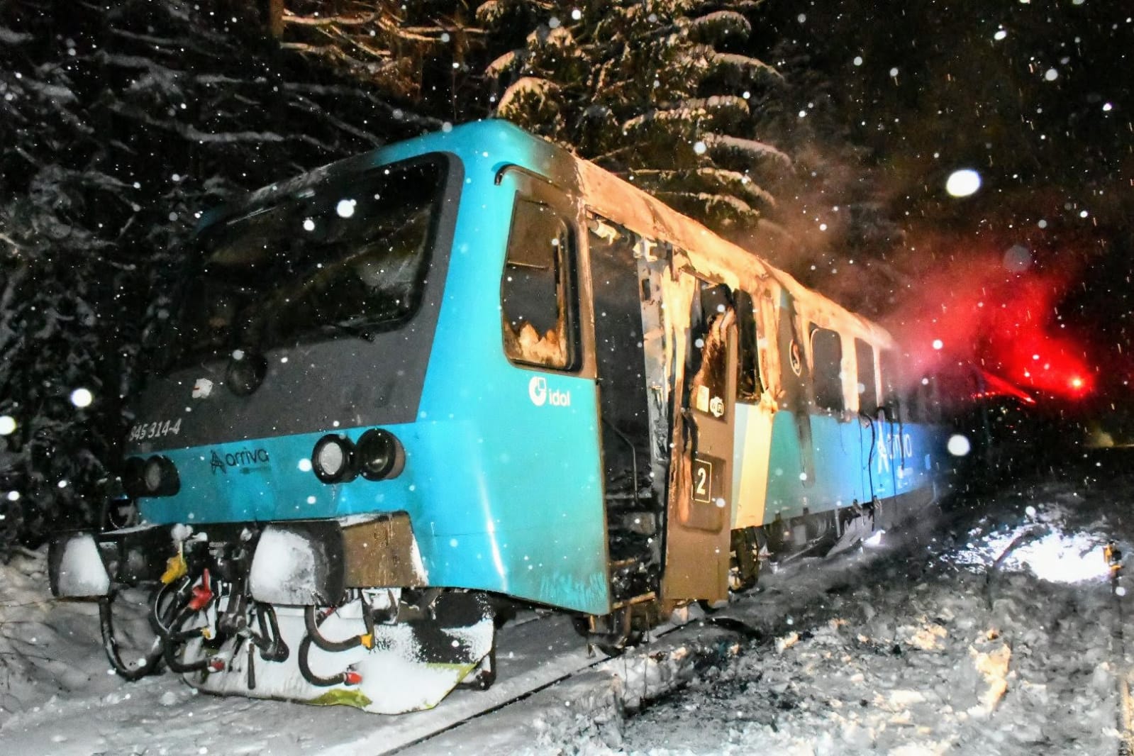 V Rybništi hořela osobní vlaková souprava. 15. 1. 2021 v 17:50 hodin. Profesionální hasiči Ústeckého kraje, HZS Správy železnic a...