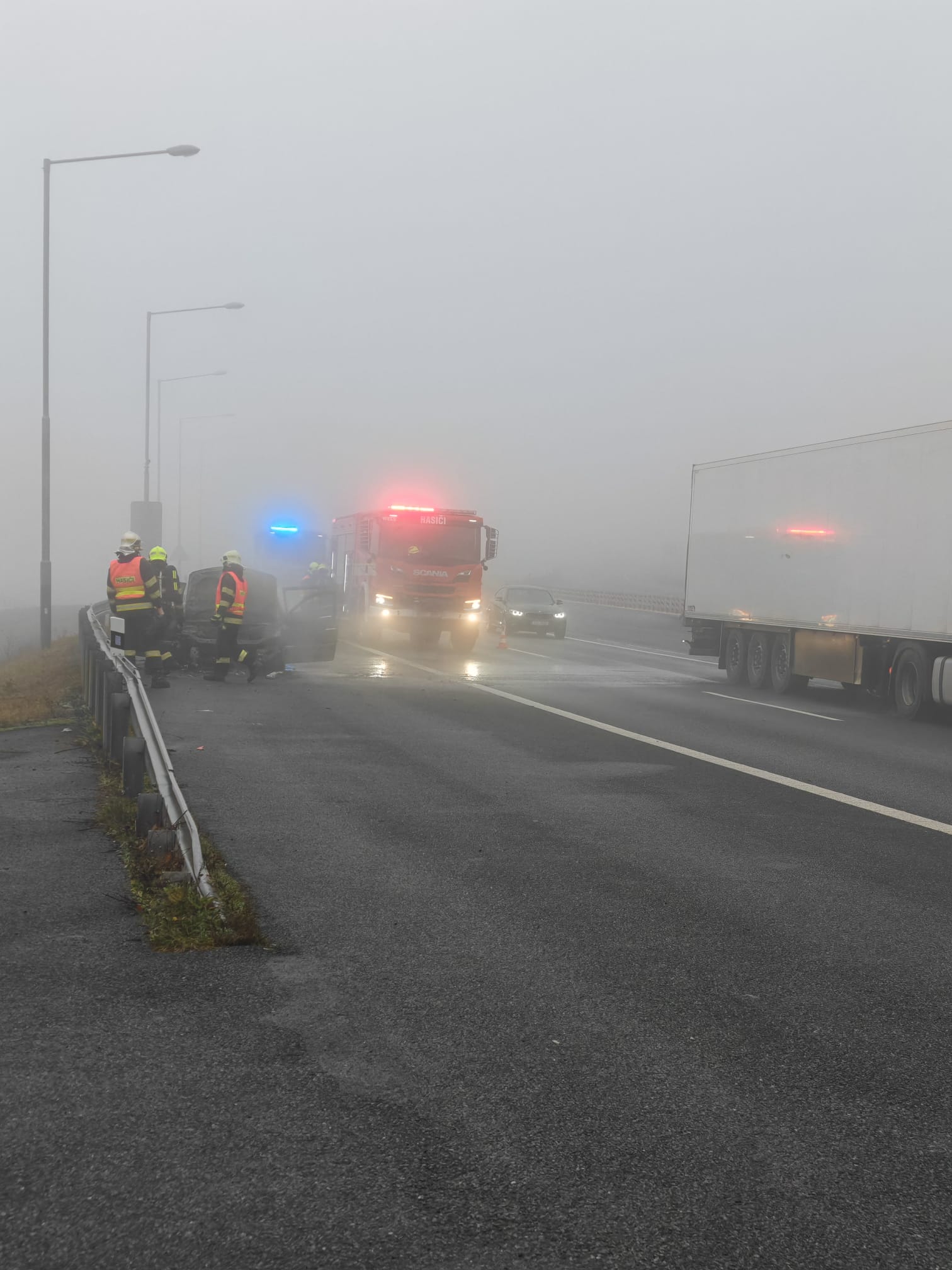 Požár vozidla na dálnici způsobil dopravní komplikace