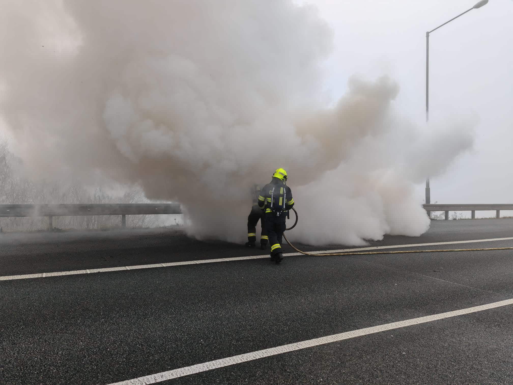 Na dálnici došlo k požáru osobního vozidla, které bylo při příjezdu hasičů zcela v plamenech. Zásah proběhl rychle a bez zranění. Událost znovu upozornila na rizika technických závad a nutnost prevence na frekventovaných komunikacích.