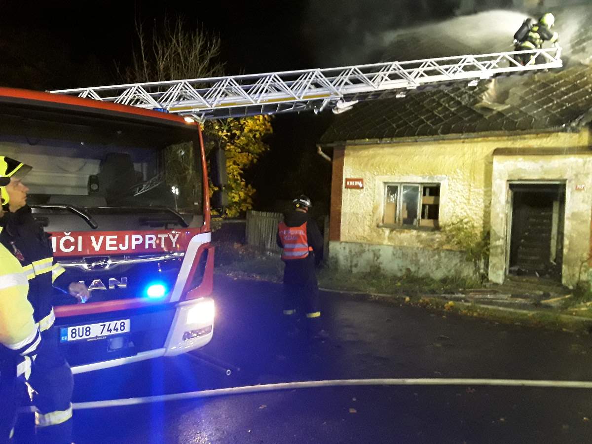 Požár vybydleného domu ve Vejprtech