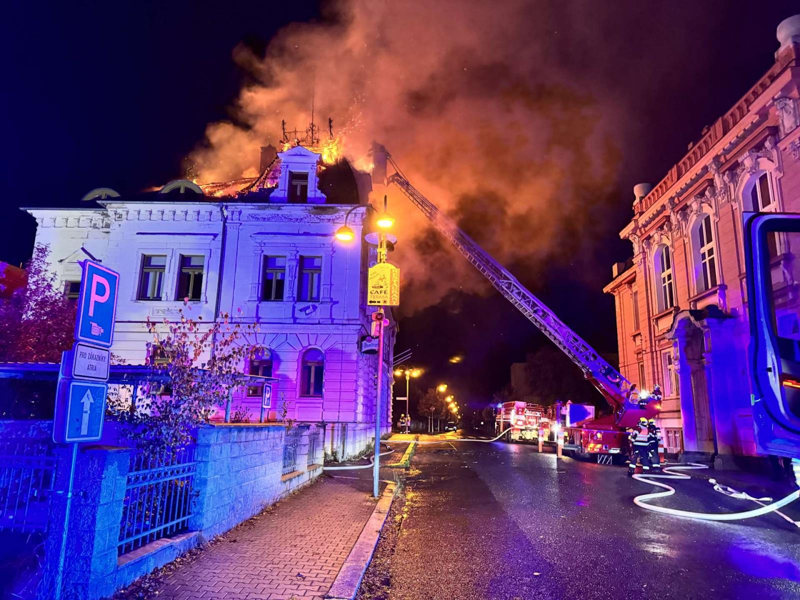Požár zachvátil střechu bývalého hotelu: Hasiči zabránili větším škodám