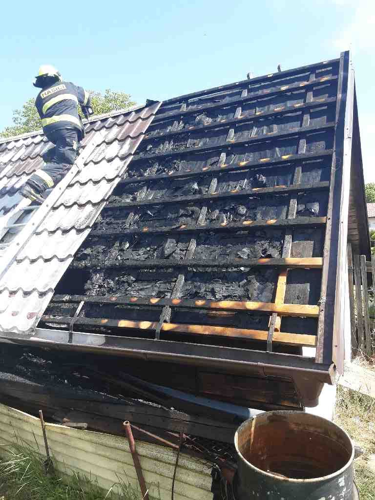 16. 5. 2022 Tři jednotky vyjely v 11:32 k požáru zahradní chatky v Bečově, okres Most. Hořela střecha chatky...