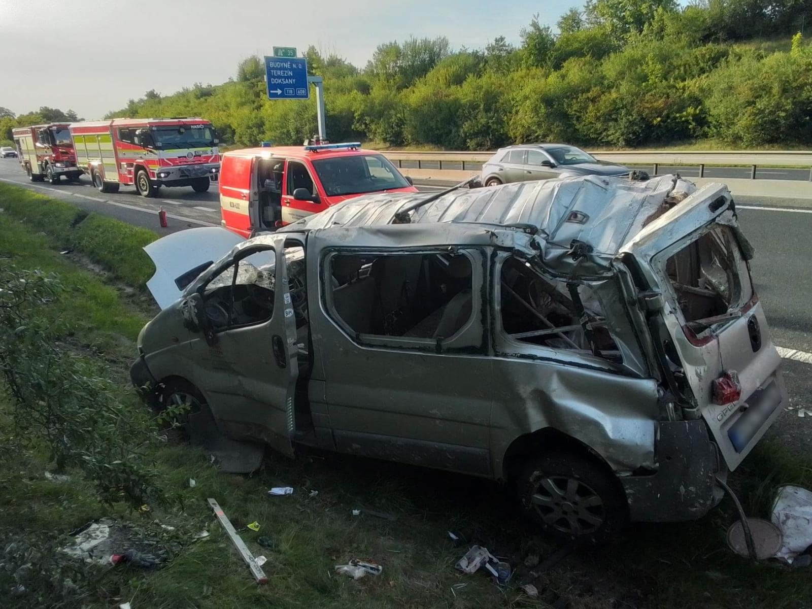 Ve čtvrtek 7. srpna krátce po 18. hodině došlo na dálnici D8 k vážné dopravní nehodě. Při události se převrátila dodávka, která zůstala ležet na střeše a zasahovala do jízdního pruhu.