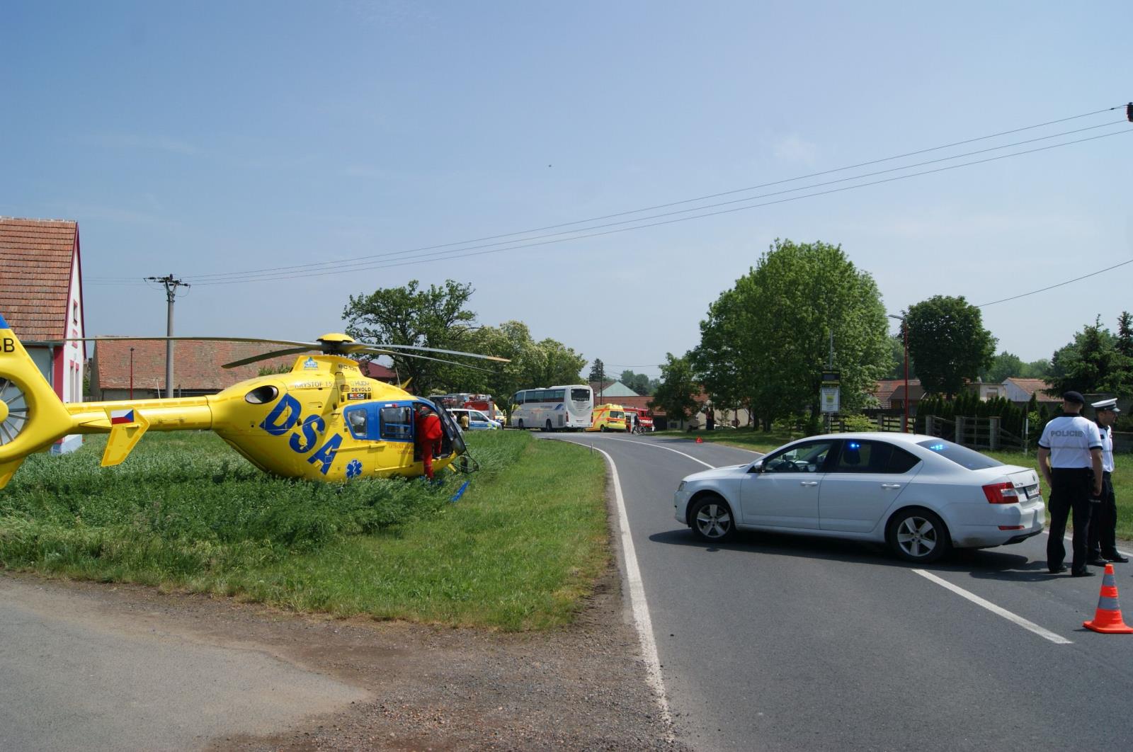 Při dopravní nehodě traktoru s autobusem se zranilo devět dětí