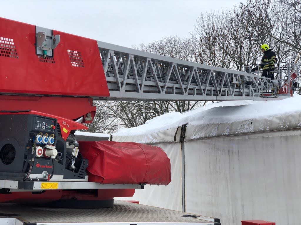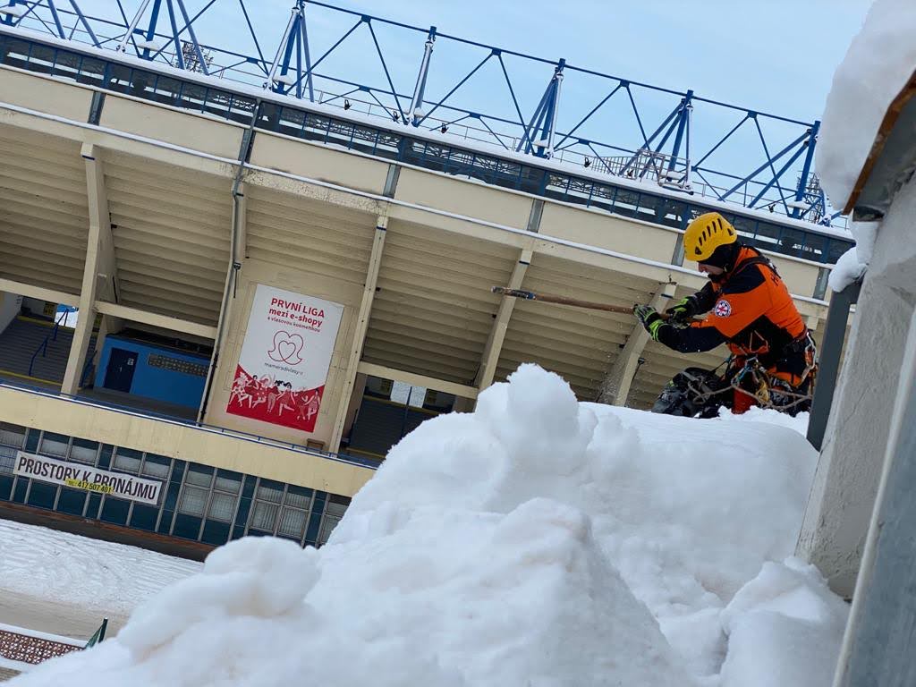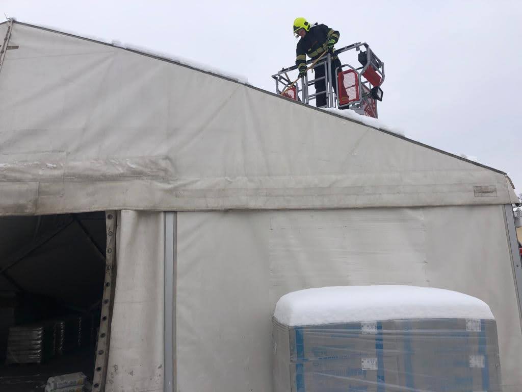 V průběhy středy se HZS Ústecké kraje podílel na odstraňování následků sněhové kalamaity. Na fotografiích hasiči ze stanice Teplice odstraňují rampouchy a led ze střechy základní školy a odebírají sníh ze střechy skladovacího stanu.