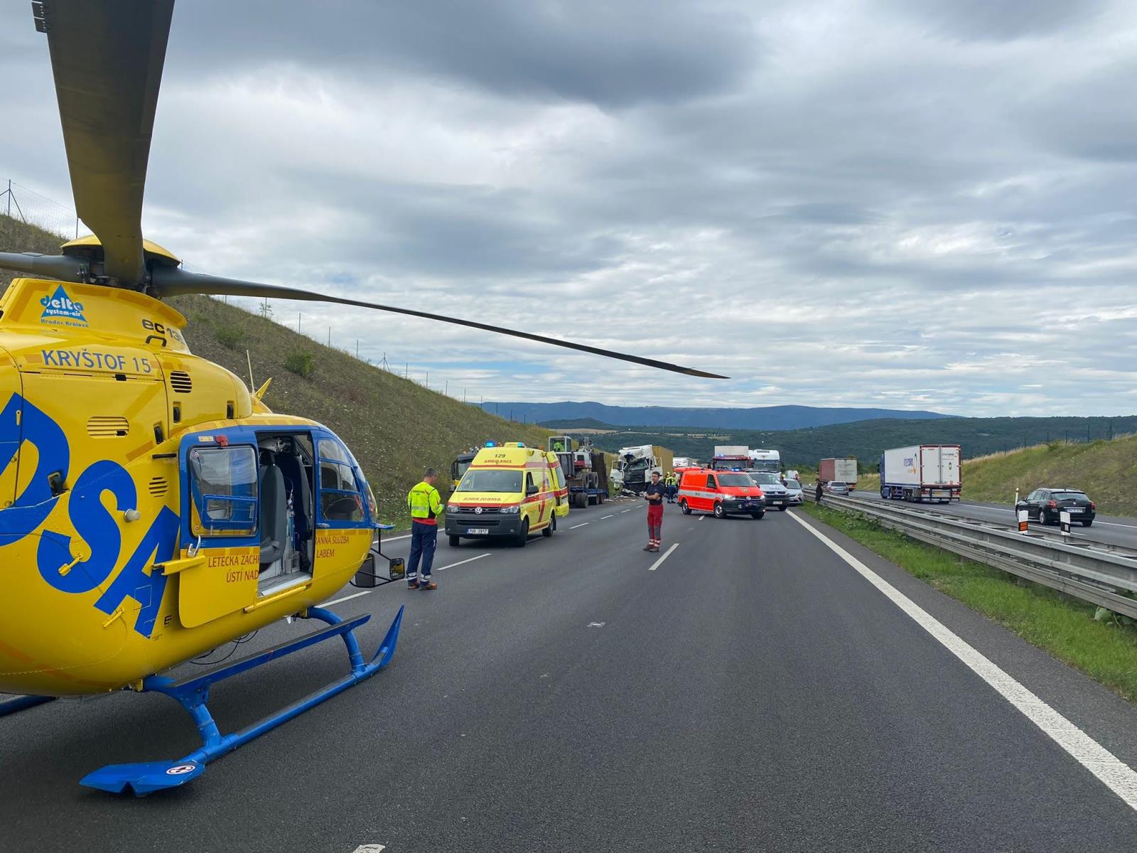 13. 7. 2022 15:40 Hasiči ze stanice Ústí n/L právě zasahují u dopravní nehody na 61 km dálnice D8 ve směru na Prahu. Došlo zde ke srážce dvou kamiónů. Jeden řidič utrpěl zranění neslučitelná se životem, druhý byl vrtulníkem transportován do nemocnice. Dálnice bude po dobu odstraňování následků nehody uzavřena ve směru na Prahu.