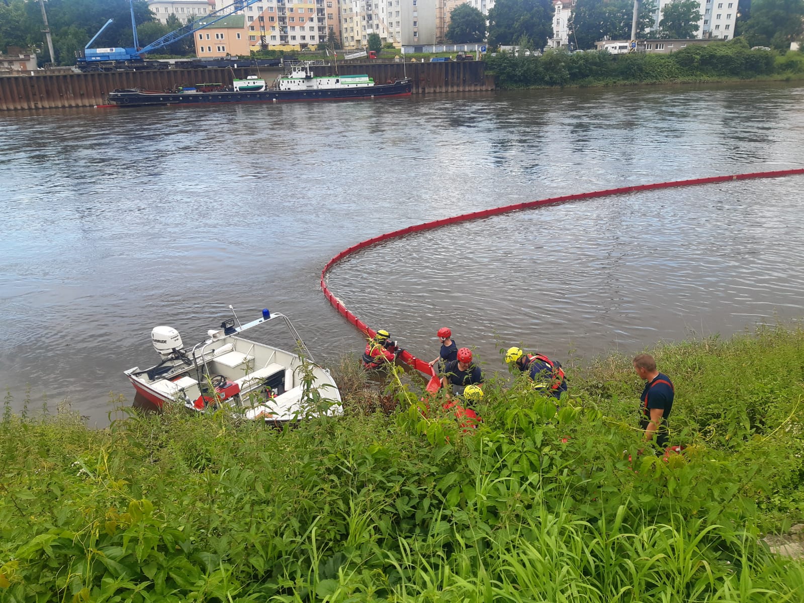 Hasiči likvidují mastné skvrny na Labi a Ohři