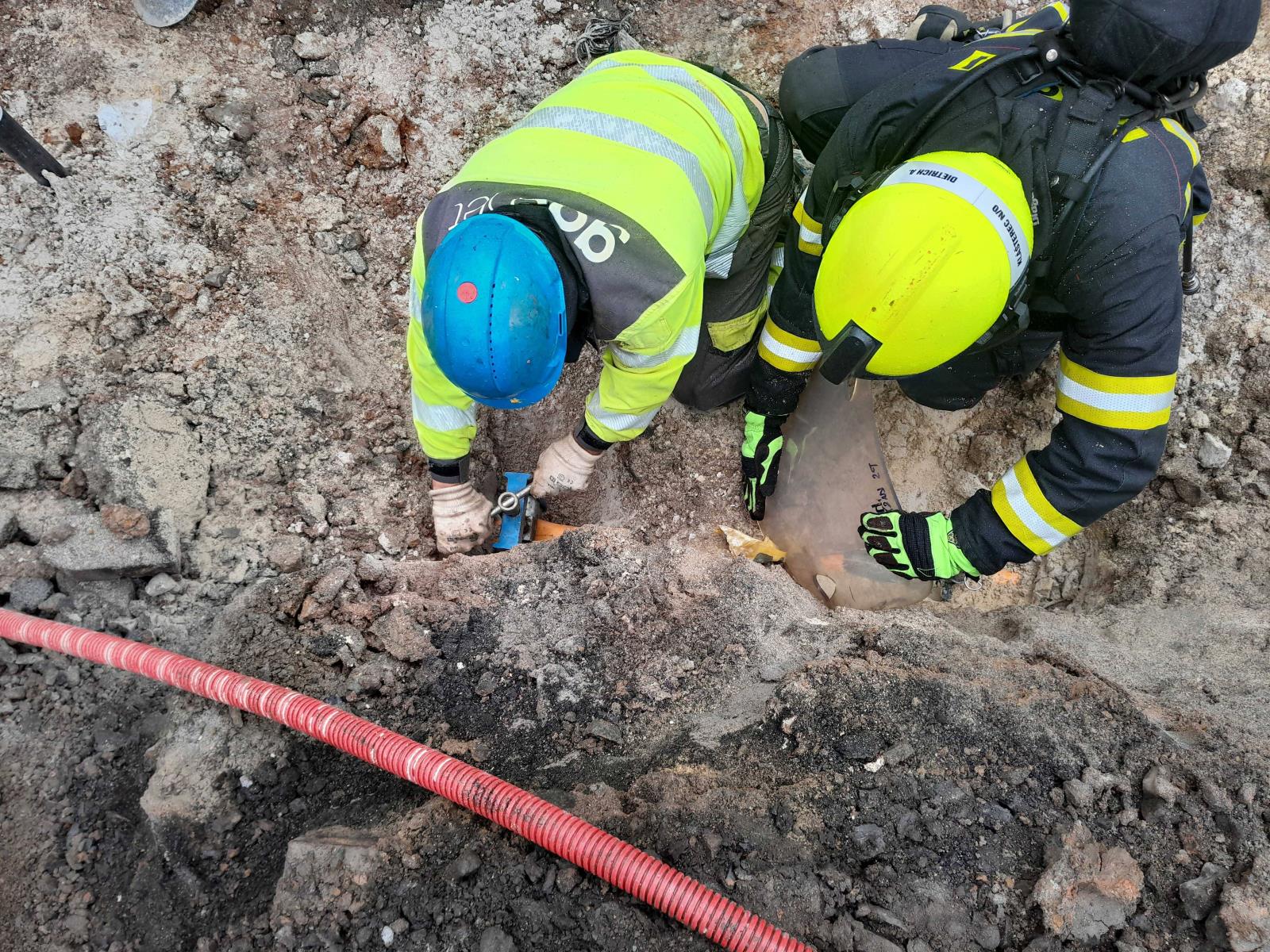 Překopnutá trubka při výkopových pracích.