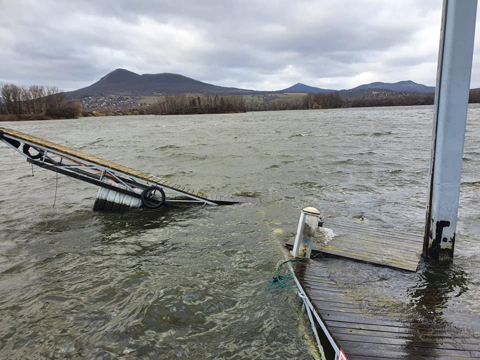 Velké vlny v neděli ráno potopily na Žernoseckém jezeře loď střední velikosti i s částí mola.