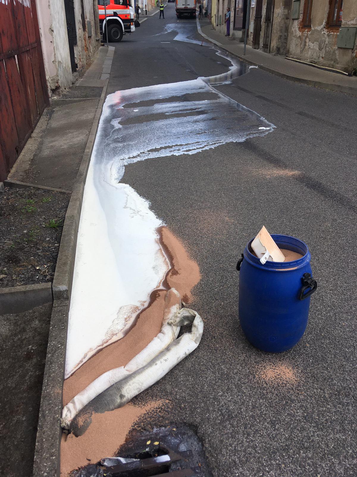 Vylitá smetana z kamionu v Benešově nad Ploučnicí