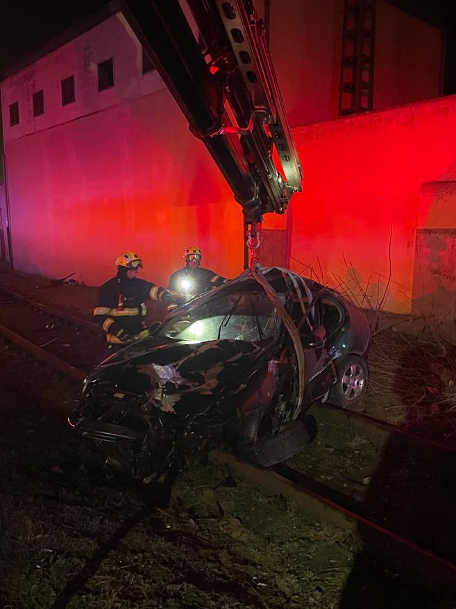 Hasiči vyprošťovali automobil na železniční vlečce
