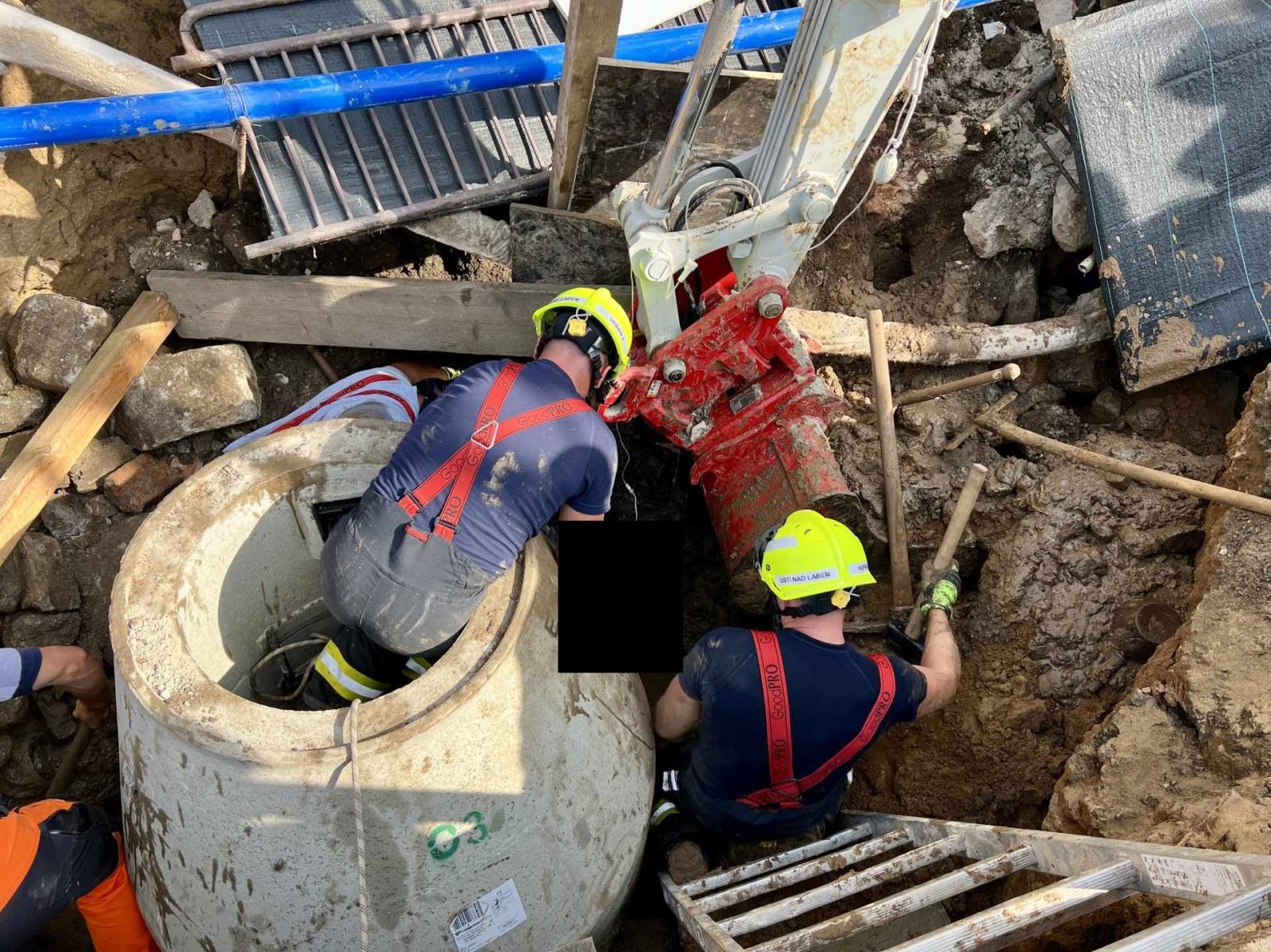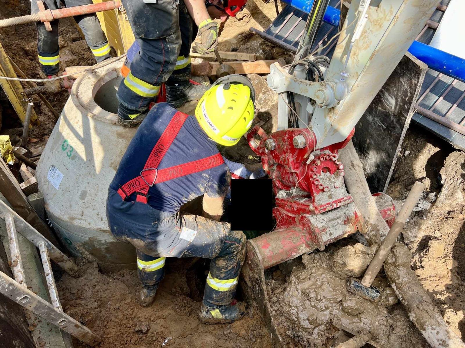 Hasiči muže vyprostili z dvoumetrové jímky.