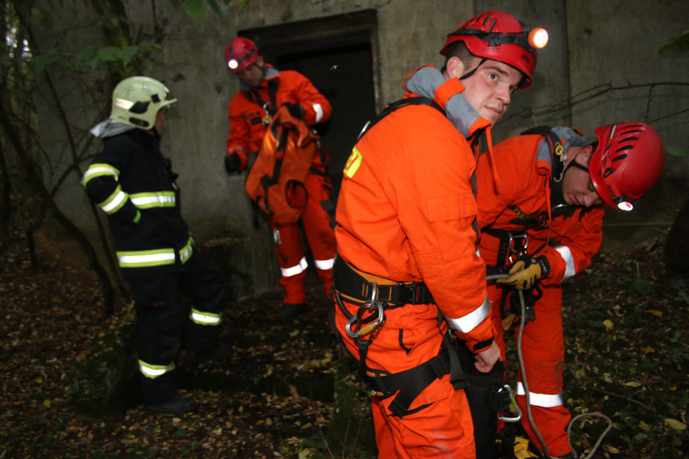 4.10. 2017 17:20 Hasičské jednotky vyjely do bývalého vojenského prostoru u obce Vroutek, kde v prázdné budově spadl pes – německý ovčák do sklepení. Byla povolána lezecká skupina. Hasiči na místo museli dojít pěšky. Lezci se spustili do asi 6m hlubokého sklepení a psa pomocí lezecké techniky vytáhli a předali v pořádku majiteli.