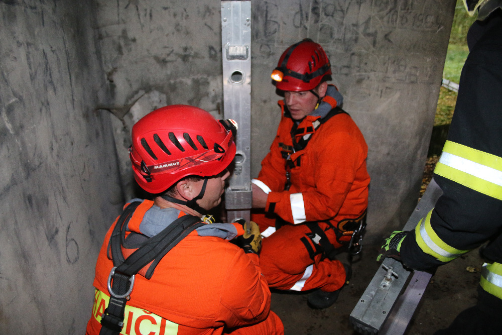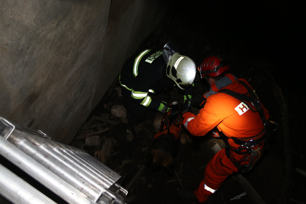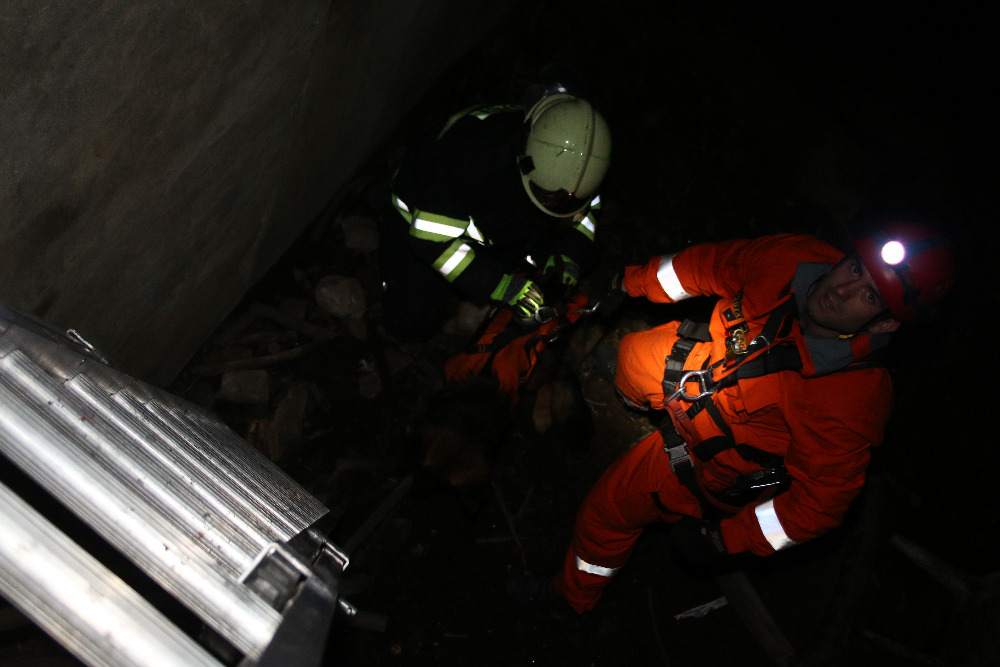 Vytažení psa ze šesti metrového sklepení u obce Vroutek