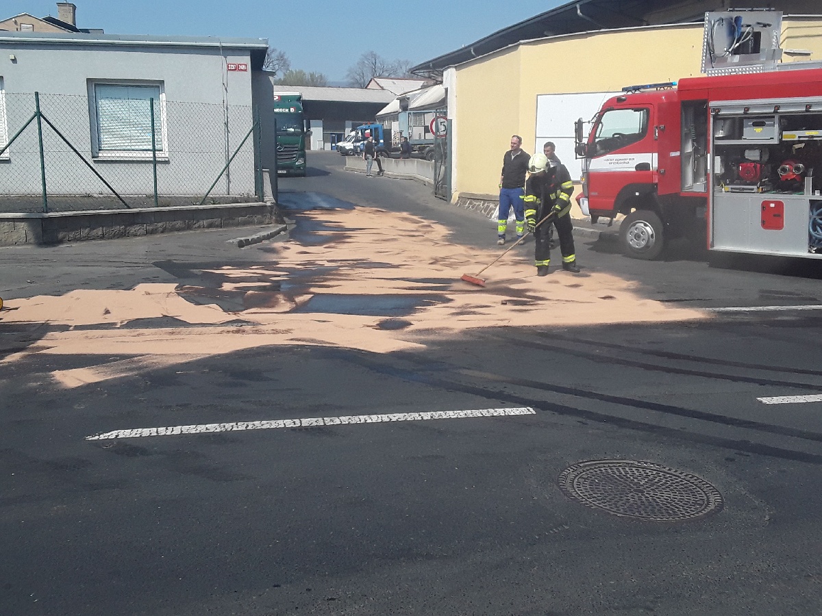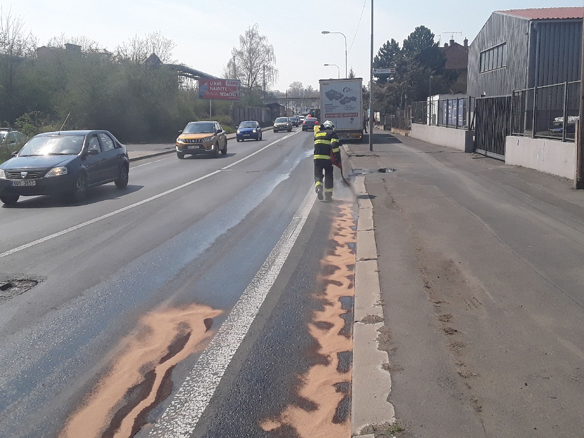 28. 4. 2021 13:14 Jednotka ze stanice Teplice vyjela do Nákladní ulice v Teplicích, kde z protržené nádrže kamionu vytékala nafta...