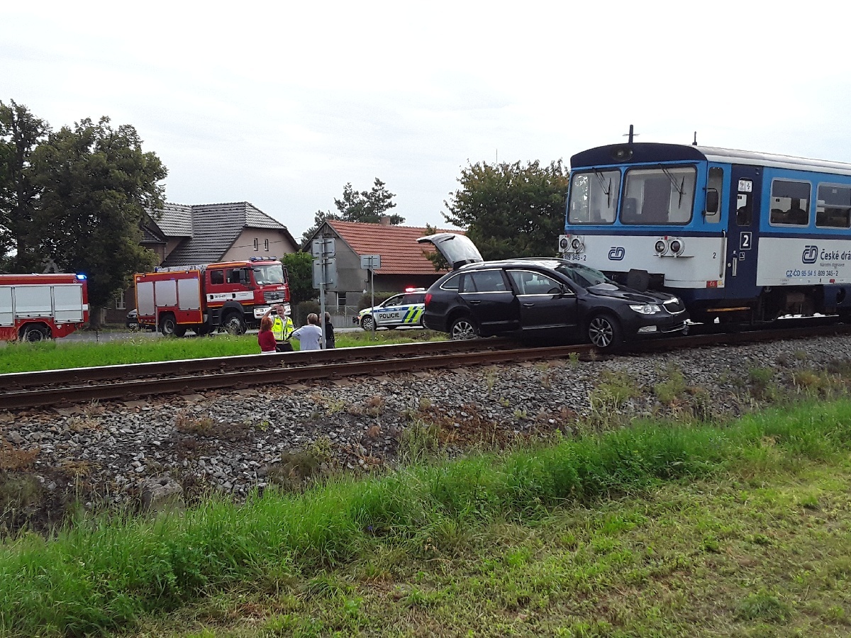 Na železničním přejezdu došlo ke srážce vlaku a automobilu