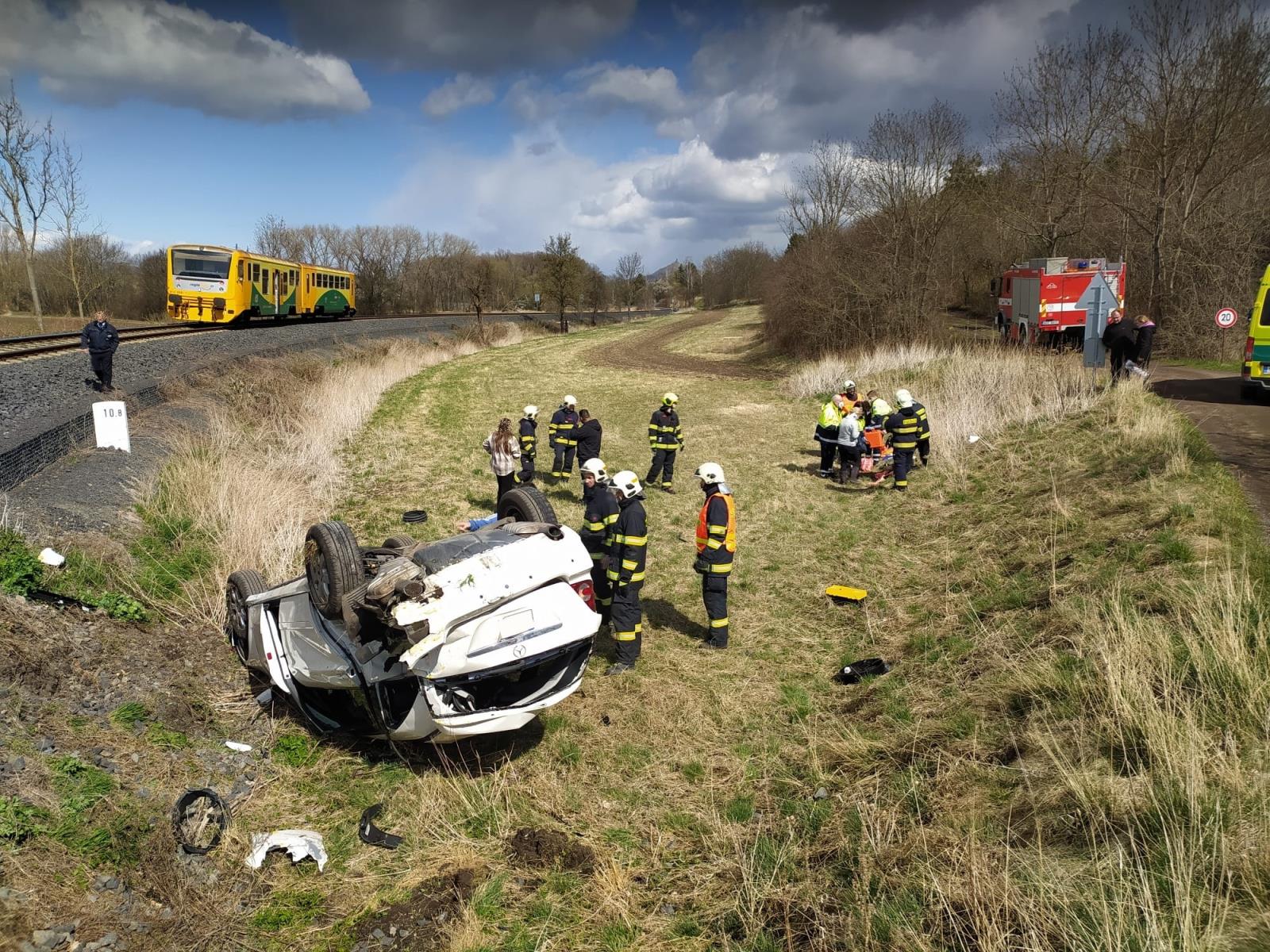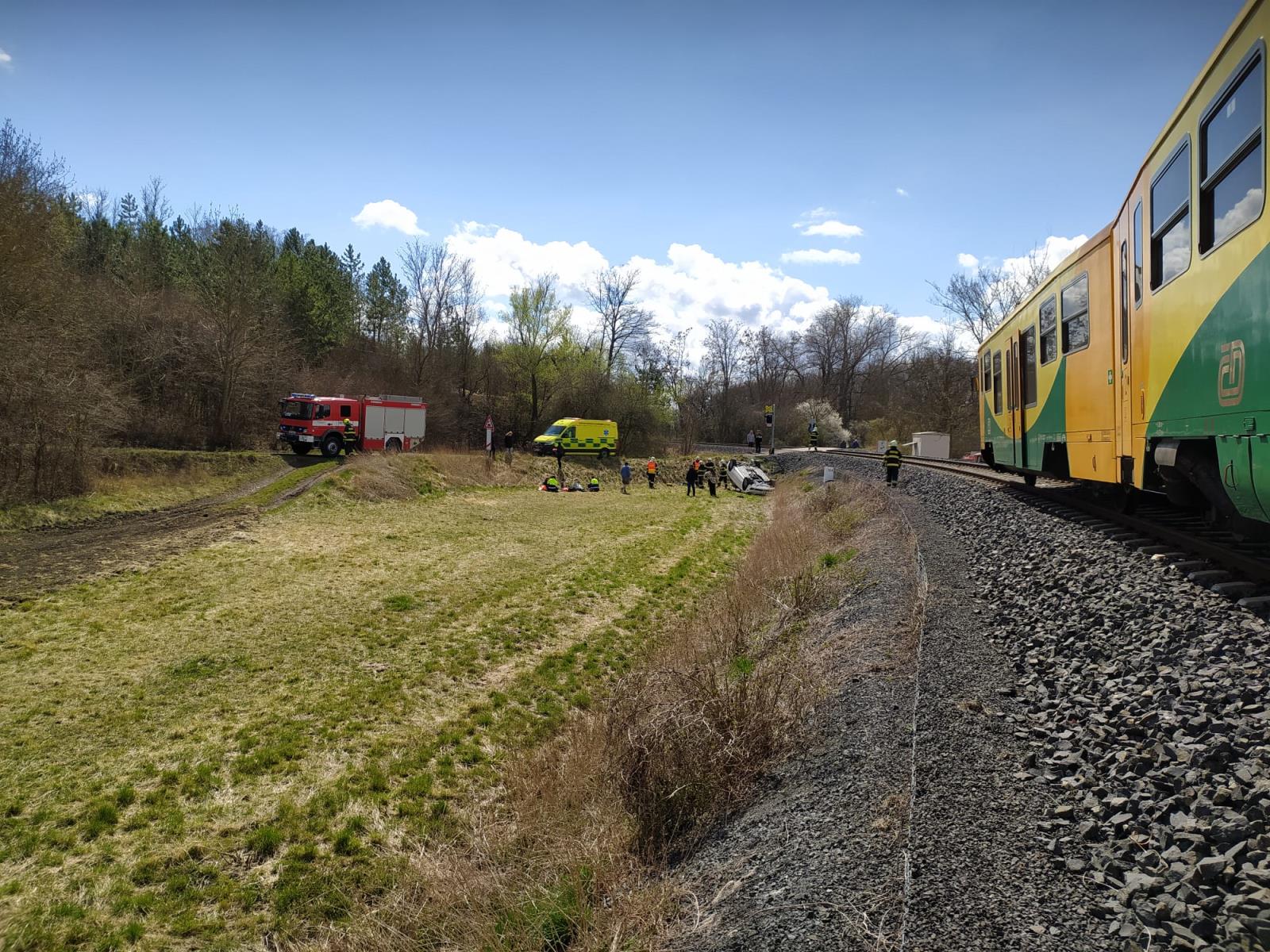10. 4. 2022 ve 13:17 hodin. Hasiči ze stanice Louny, Správy železnic a dobrovolní hasiči obce Peruc zasahovali u dopravní nehody...