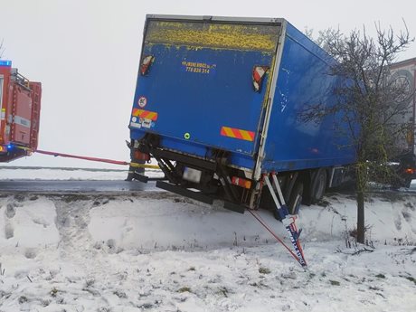 Na zledovatělé silnici došlo ke střetu kamionu, nákladního a osobního automobilu. Nehoda zablokovala komunikaci na několik hodin a ukázala rizika jízdy v zimních podmínkách.