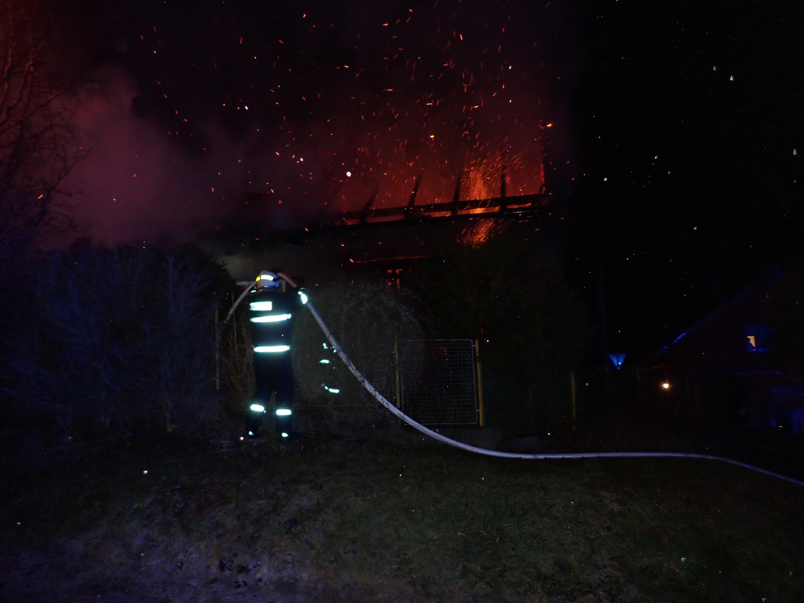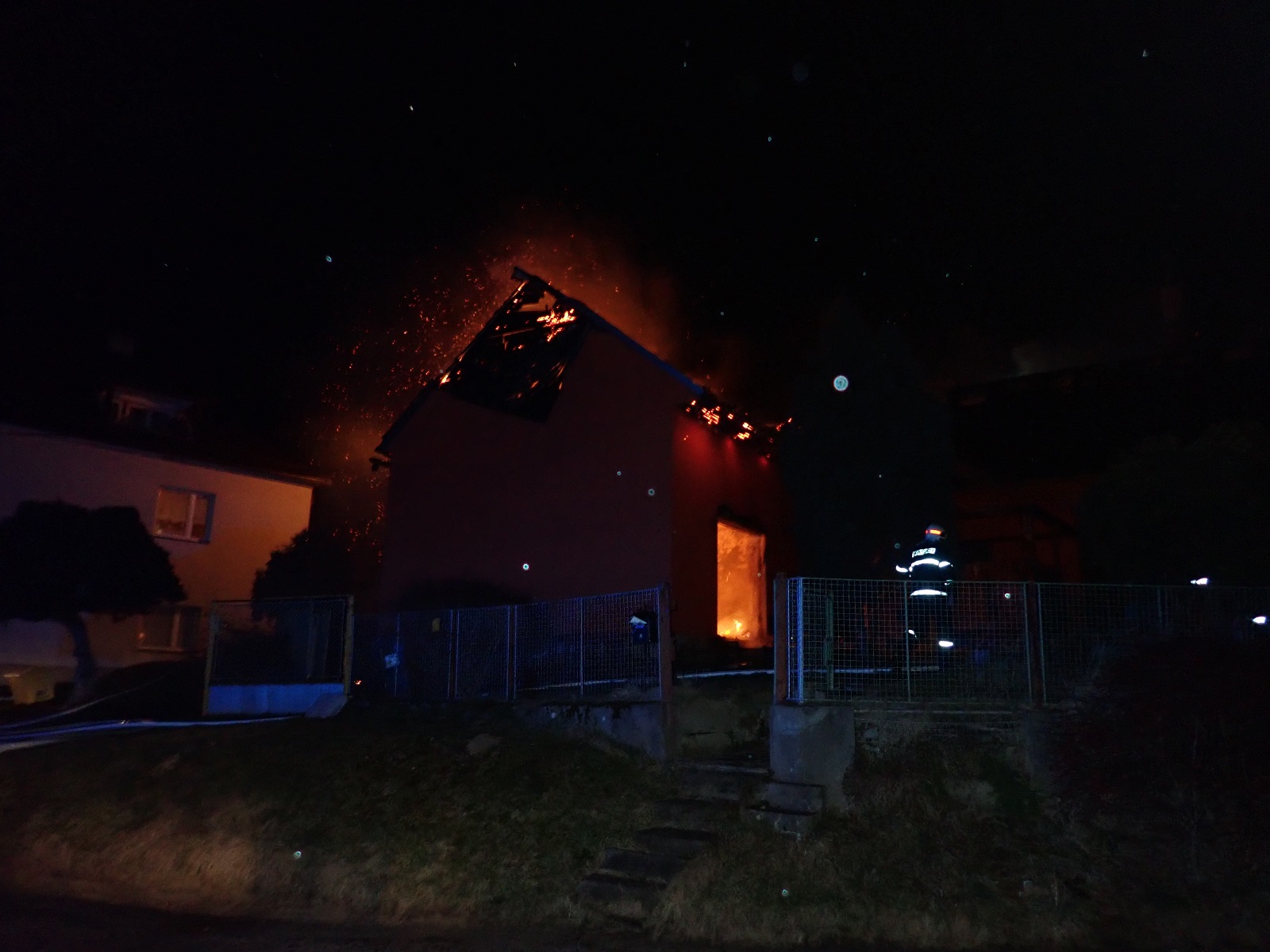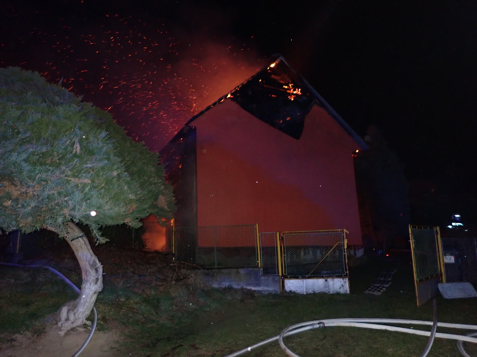 V době příjezdu hasičů byl objekt celý v plamenech. Hasiči v dýchacích přístrojích dostali požár pod kontrolu s pomocí šesti útočných proudů vody. Velitel zásahu si vyžádal na místo Zdravotnickou záchrannou službu Zlínského kraje, protože na místě požáru byla jedna osoba zraněná.