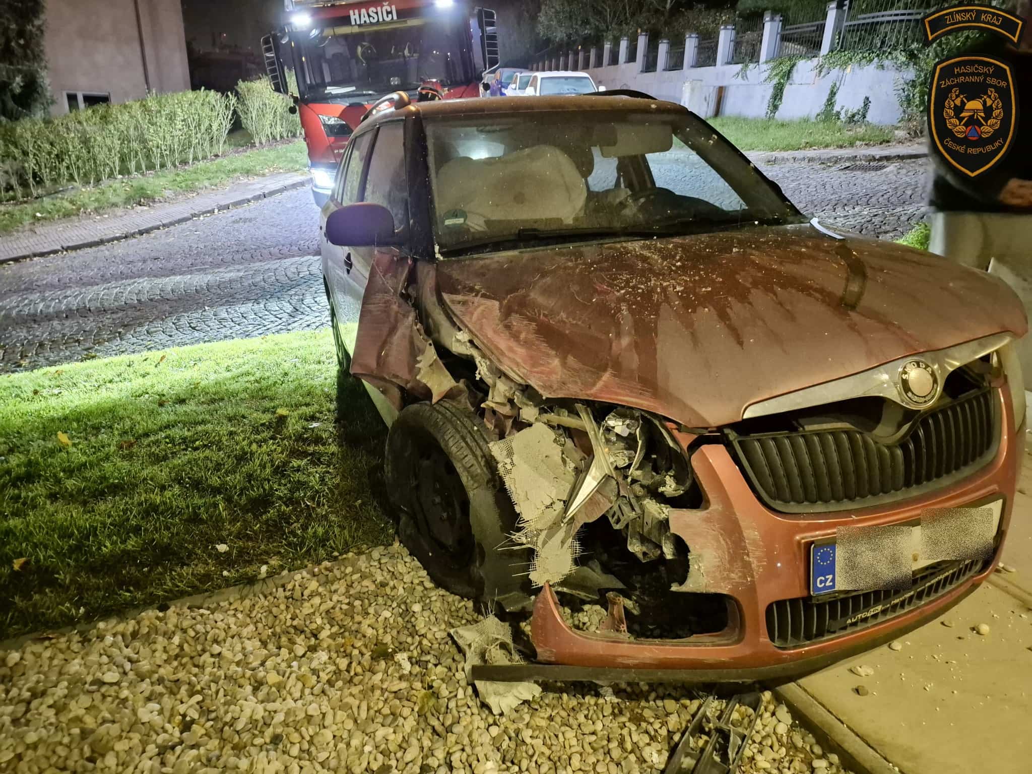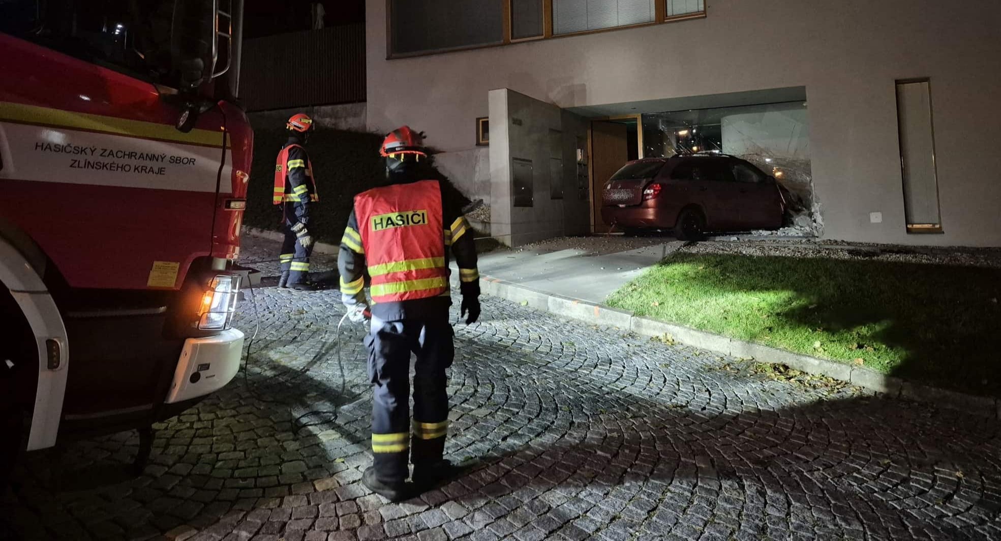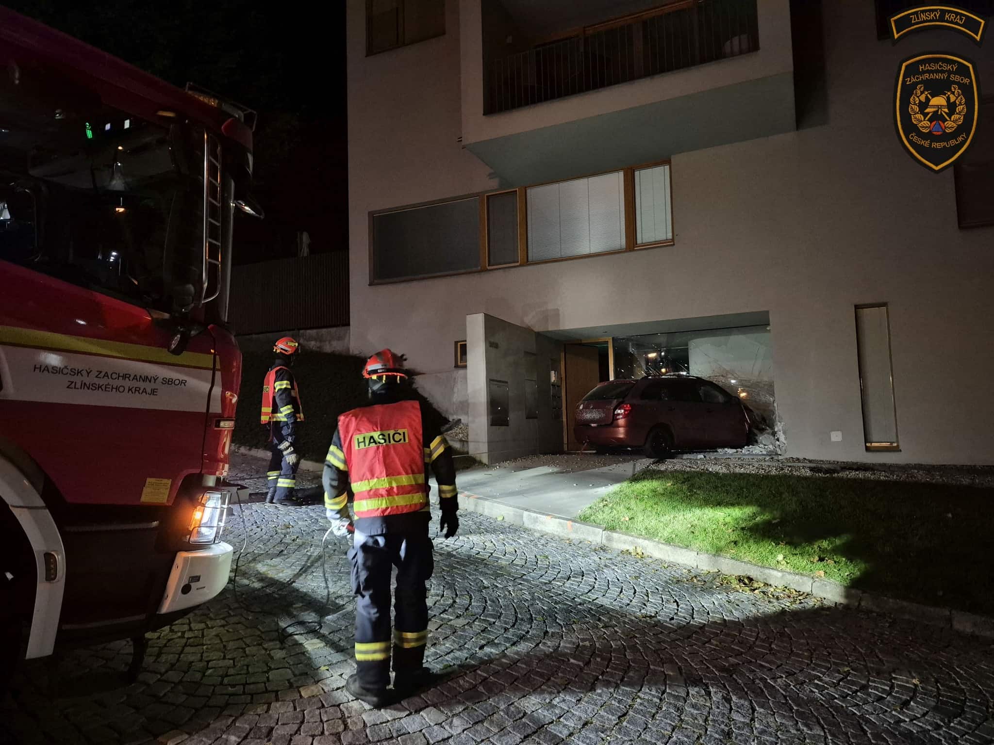 Ve tři hodiny ráno došlo v ulici Partyzánská ve Zlíně k nehodě, při níž osobní auto narazilo přímo do domu. Řidič utrpěl zranění a byl předán do péče zdravotnické záchranné služby. Hasiči museli využít vyprošťovací techniku, aby vozidlo vytáhli z domu, a následně provedli úklid místa.
