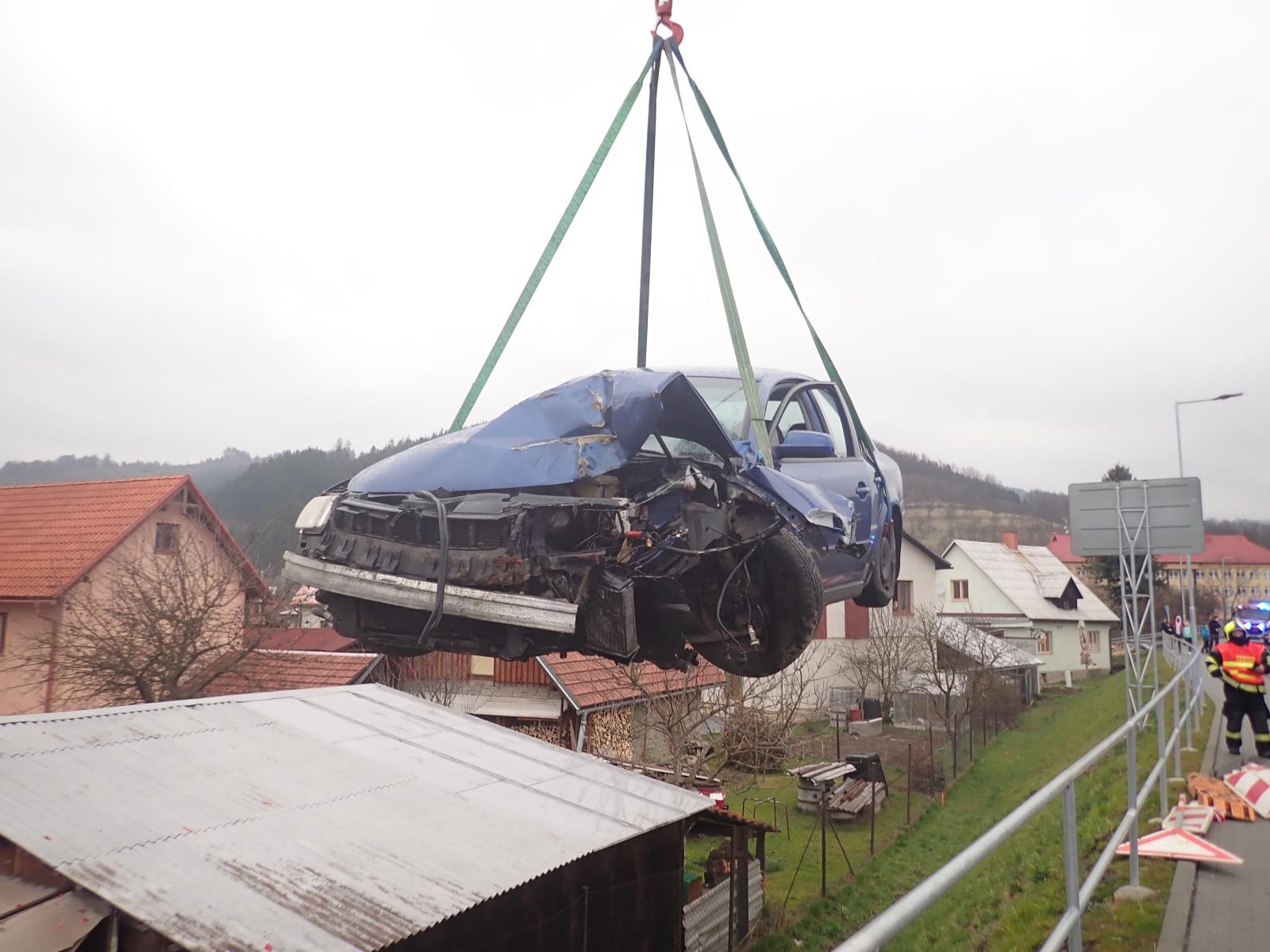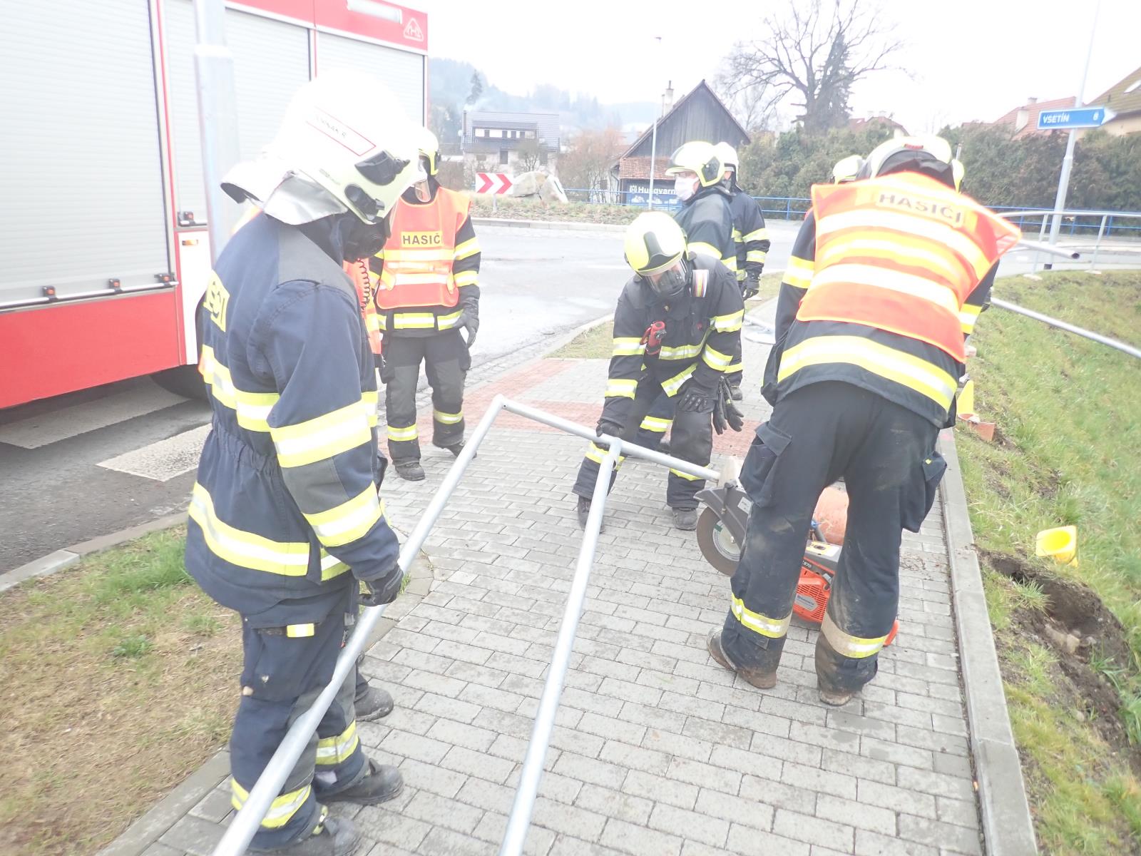 K vážně vypadající nehodě, která se stala v obci Hovězí na Vsetínsku, byli vysláni krátce před půl třetí odpolední profesionální hasiči ze stanice Vsetín a místní jednotka.