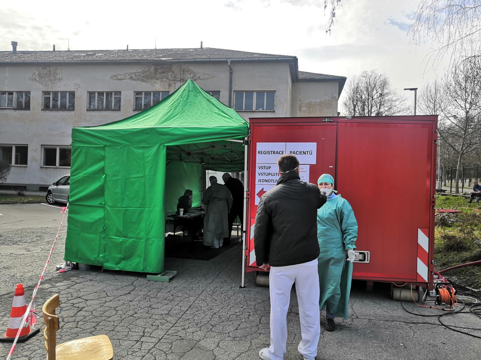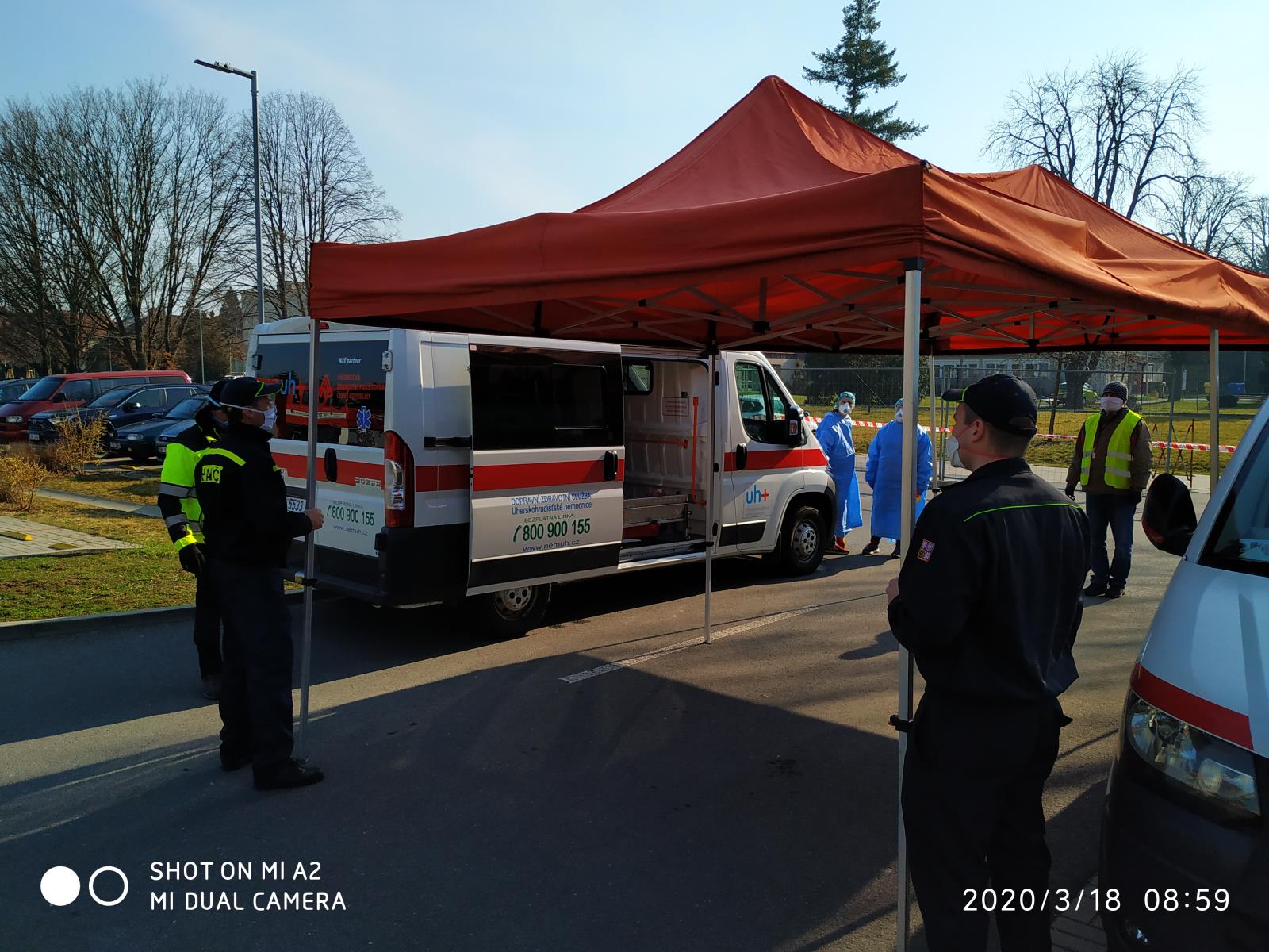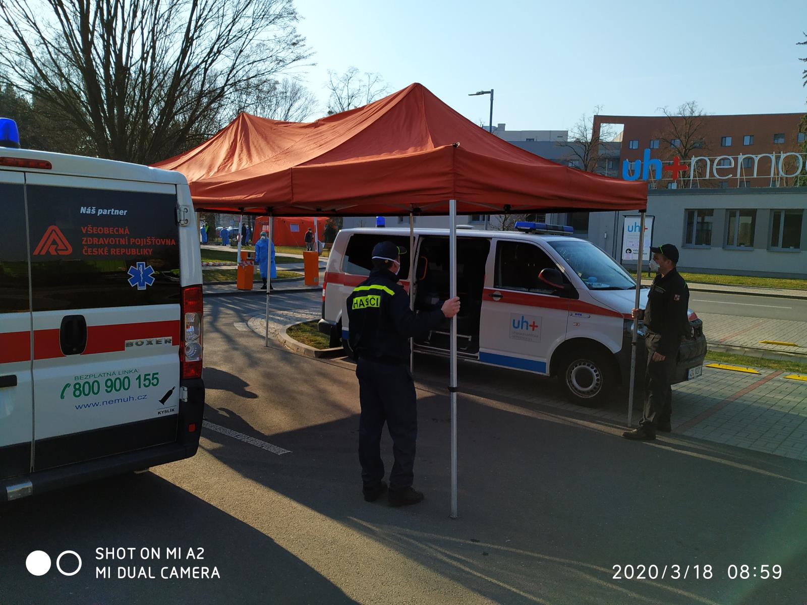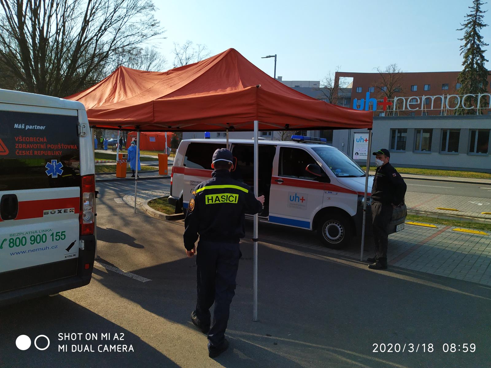 Dnes v brzkých ranních hodinách hasiči ze stanice Zlín nainstalovali čtyři stany na třídící stanoviště u vchodů do krajské nemocnice. Zlínští hasiči dále rozváží pro Zlínský kraj ochranné prostředky, které jsou určené pro nemocnice, charity a další organizace zřizované krajem.