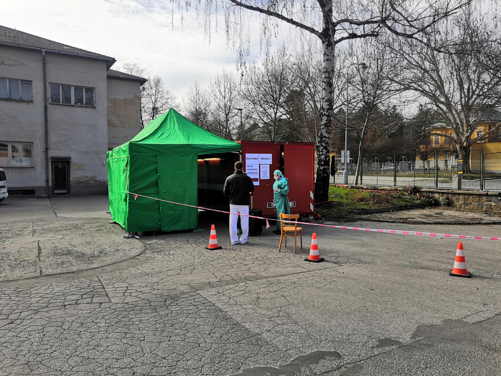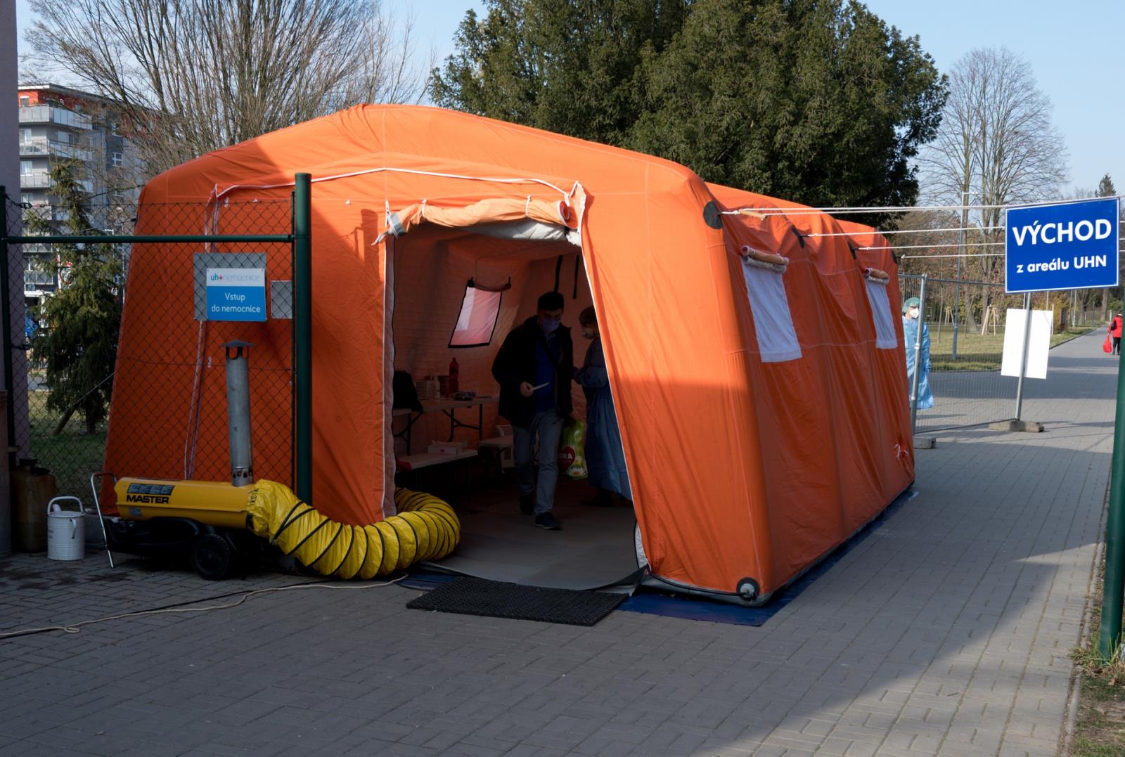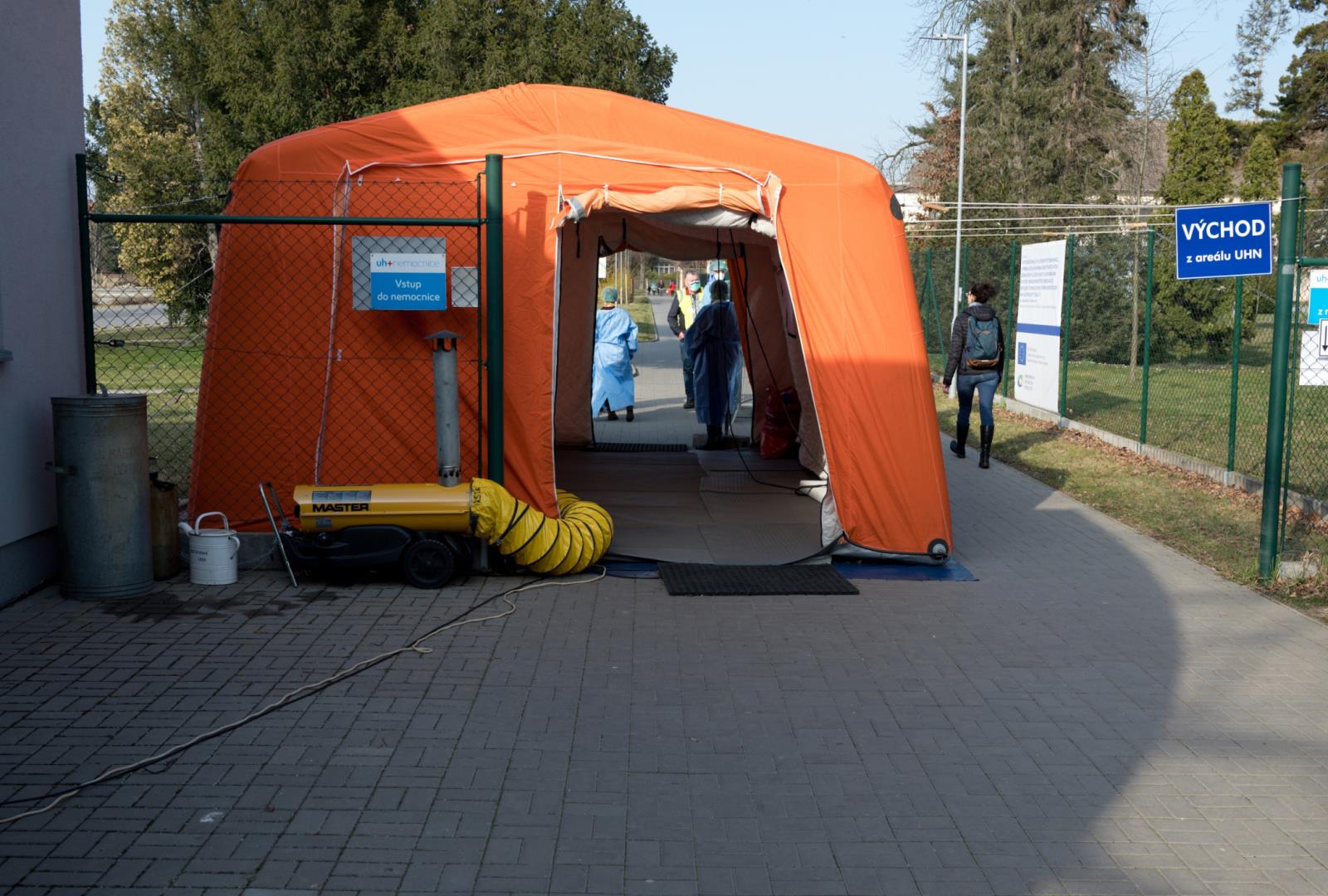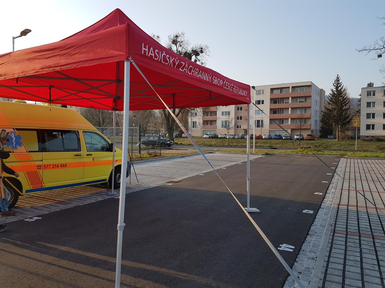 Uherskohradišťské nemocnici jsme zapůjčili nafukovací stan na zřízení třídícího místa u vstupu do nemocnice. Dnes k němu přibyl i nůžkový stan.