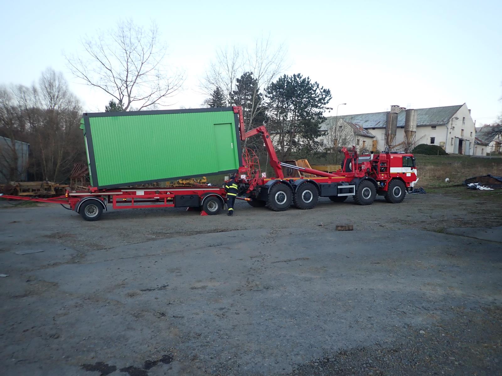 S pomocí vyprošťovacího automobilu ze stanice Otrokovice průběžně nakládáme v Zádveřicích na Zlínsku kontejnery pro zřízení odběrových míst v nemocnicích po celé České republice. Samotnou přepravu poté zajišťují kolegové ze Záchranného útvaru HZS ČR Hlučín.