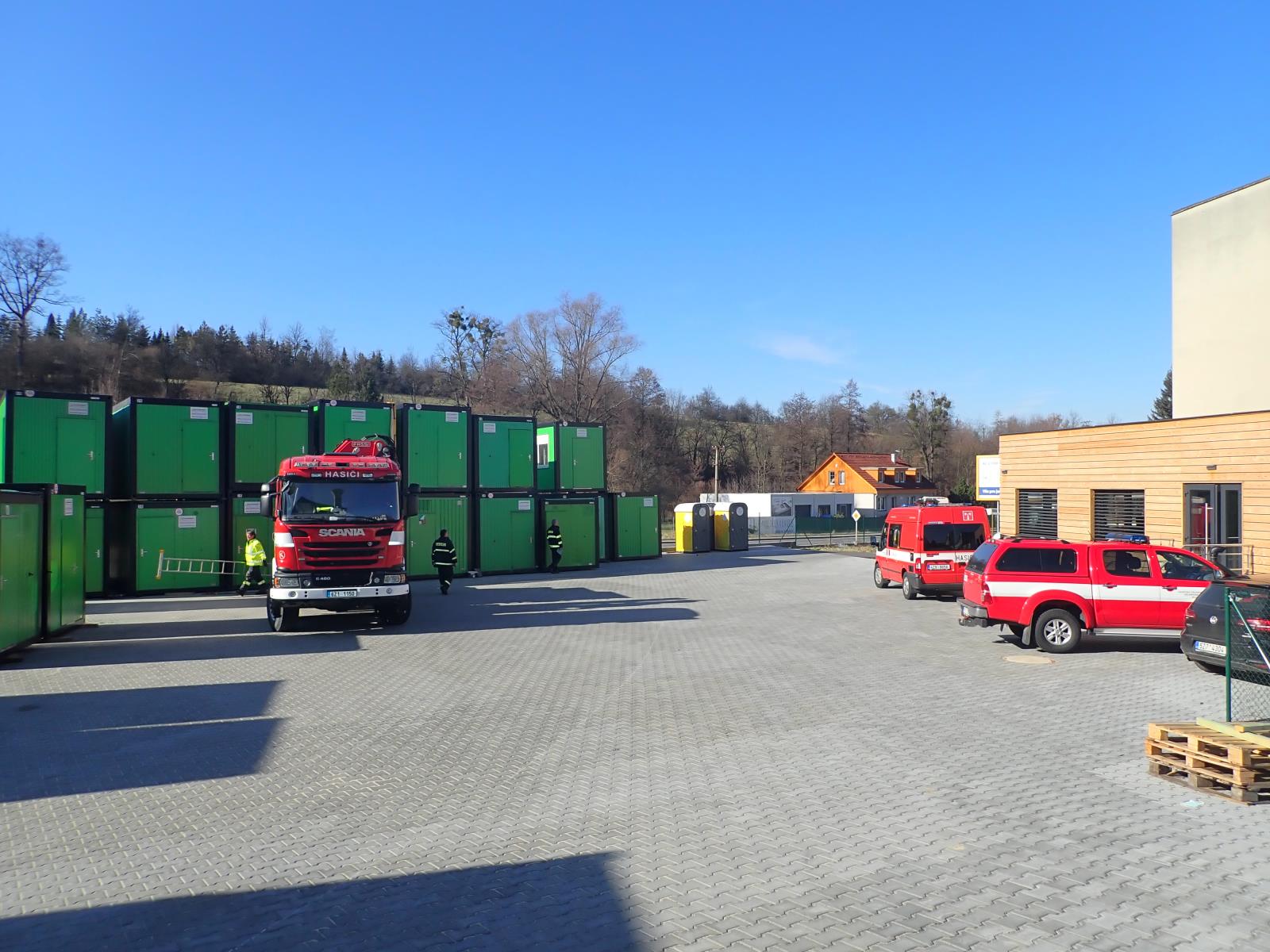 Do nemocnice v Kroměříži jsme instalovali týlový kontejner, taktéž ke zřízení třídícího místa u vstupu do areálu nemocnice.