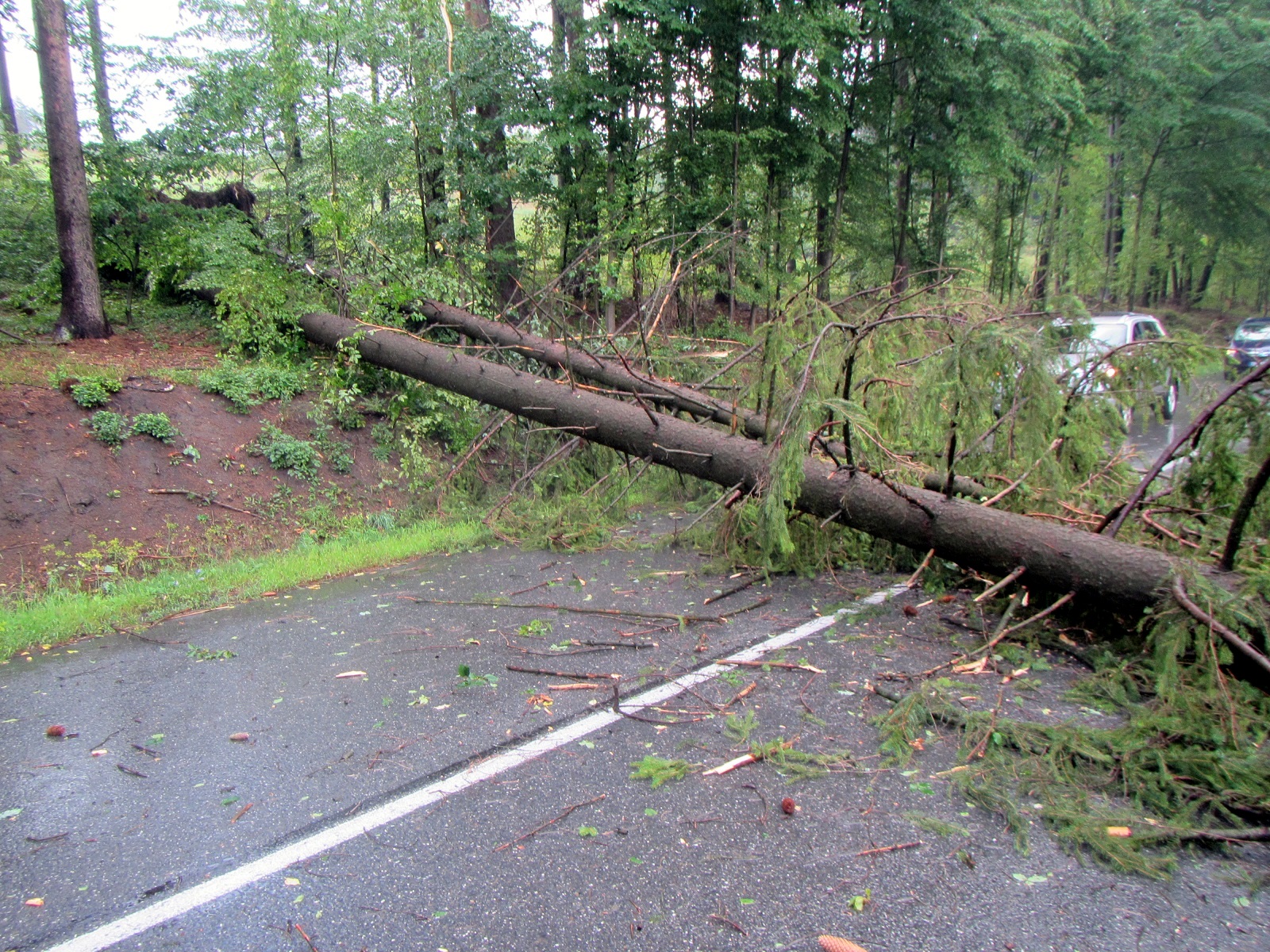 Bouřka způsobila popadaní většího množství stromů, které uvěznily řidiče na silnici na Zlínsku