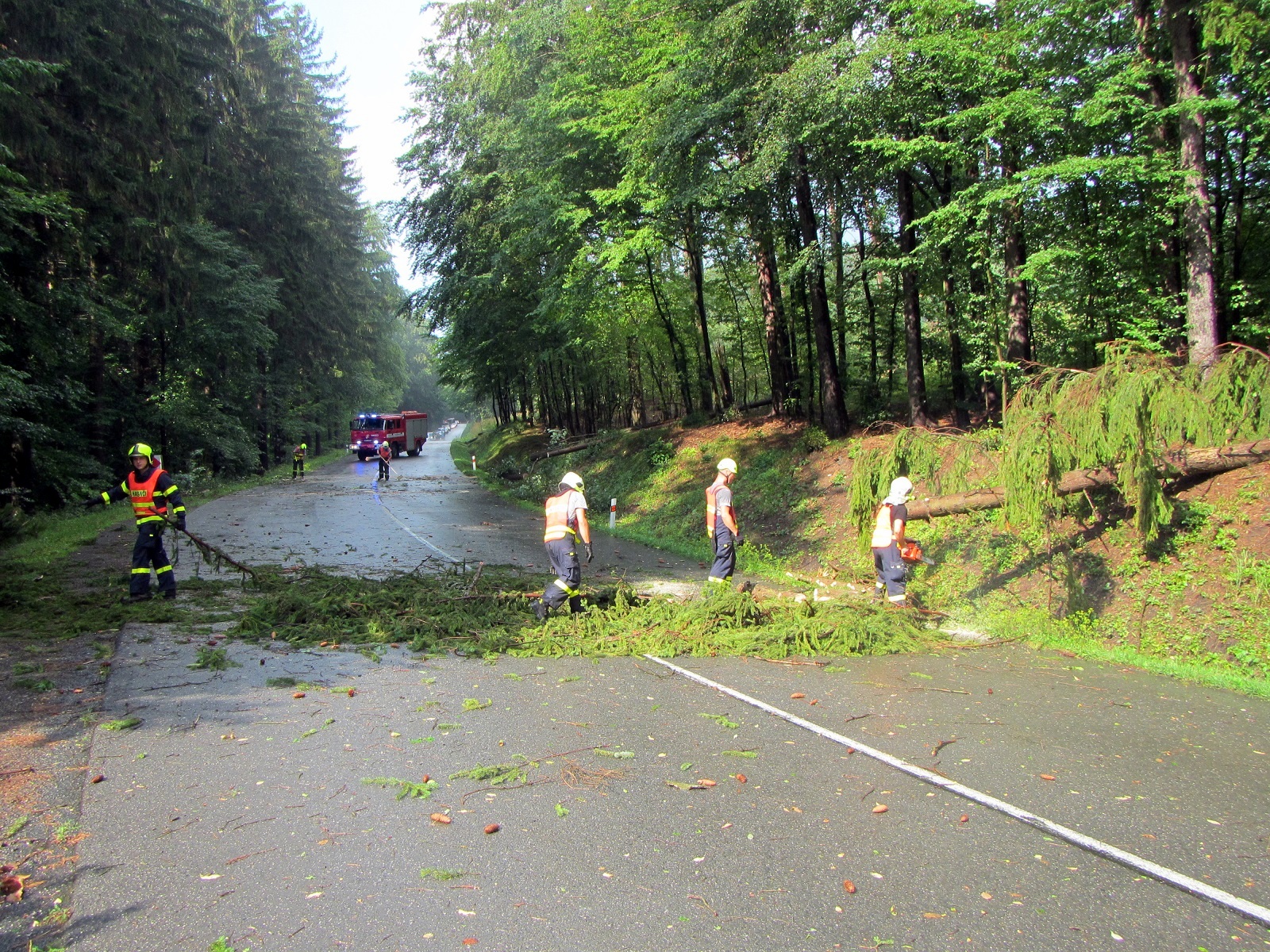 Ve čtvrtek 2. 8. 2018, krátce po půl čtvrté odpoledne přijali hasiči žádost o pomoc při řešení následků lokální bouřky, při které došlo k popadání několika stromů a k zablokování hlavní komunikace z obce Březůvky směrem na Kudlov.