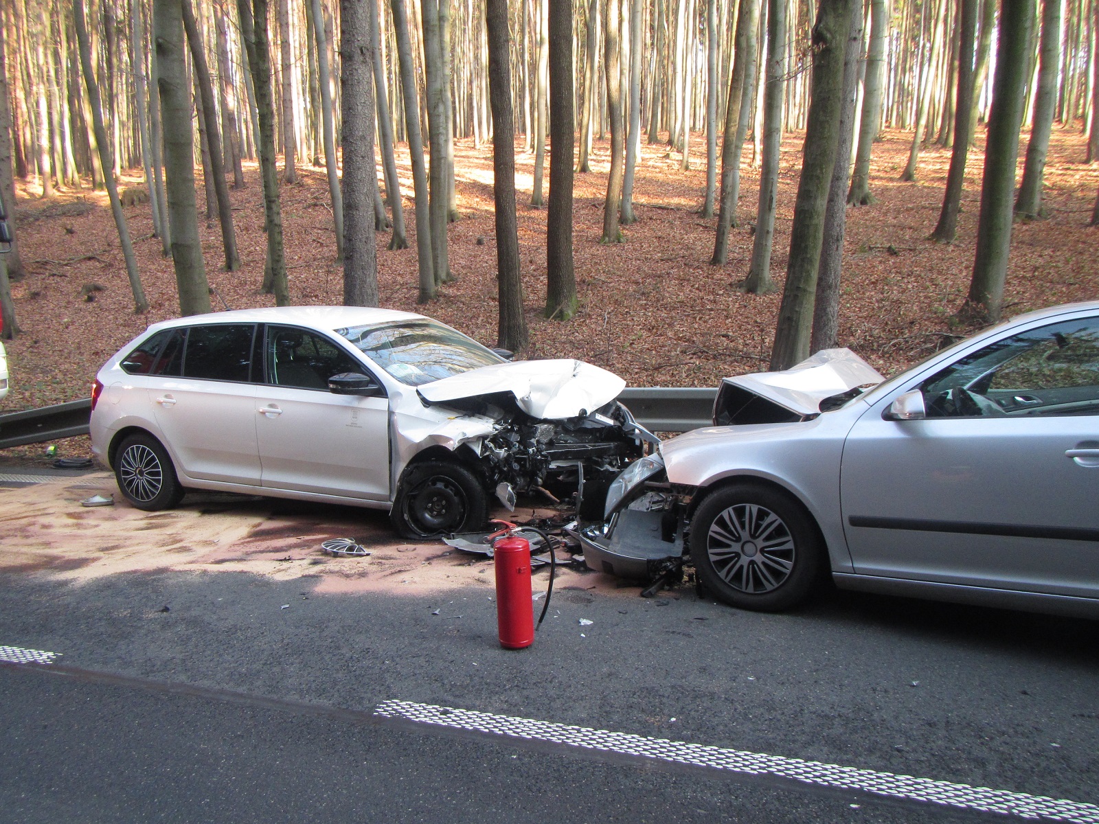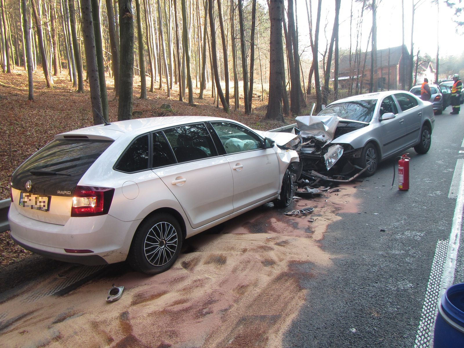 Hasiči nakonec uklidili ze silnice použitý sorbent a zametli střepy a úlomky z havarovaných vozidel. Poté z místa nehody odjeli zpět na své stanice.
