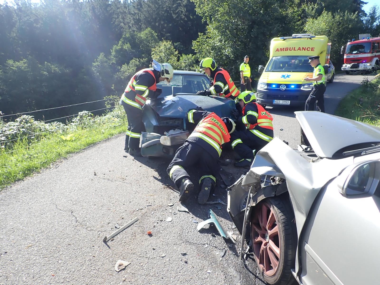 Následně hasiči odtáhli vozidlo Felicia mimo cestu. Odtah druhého vozidla si na místě zajistil jeho majitel.