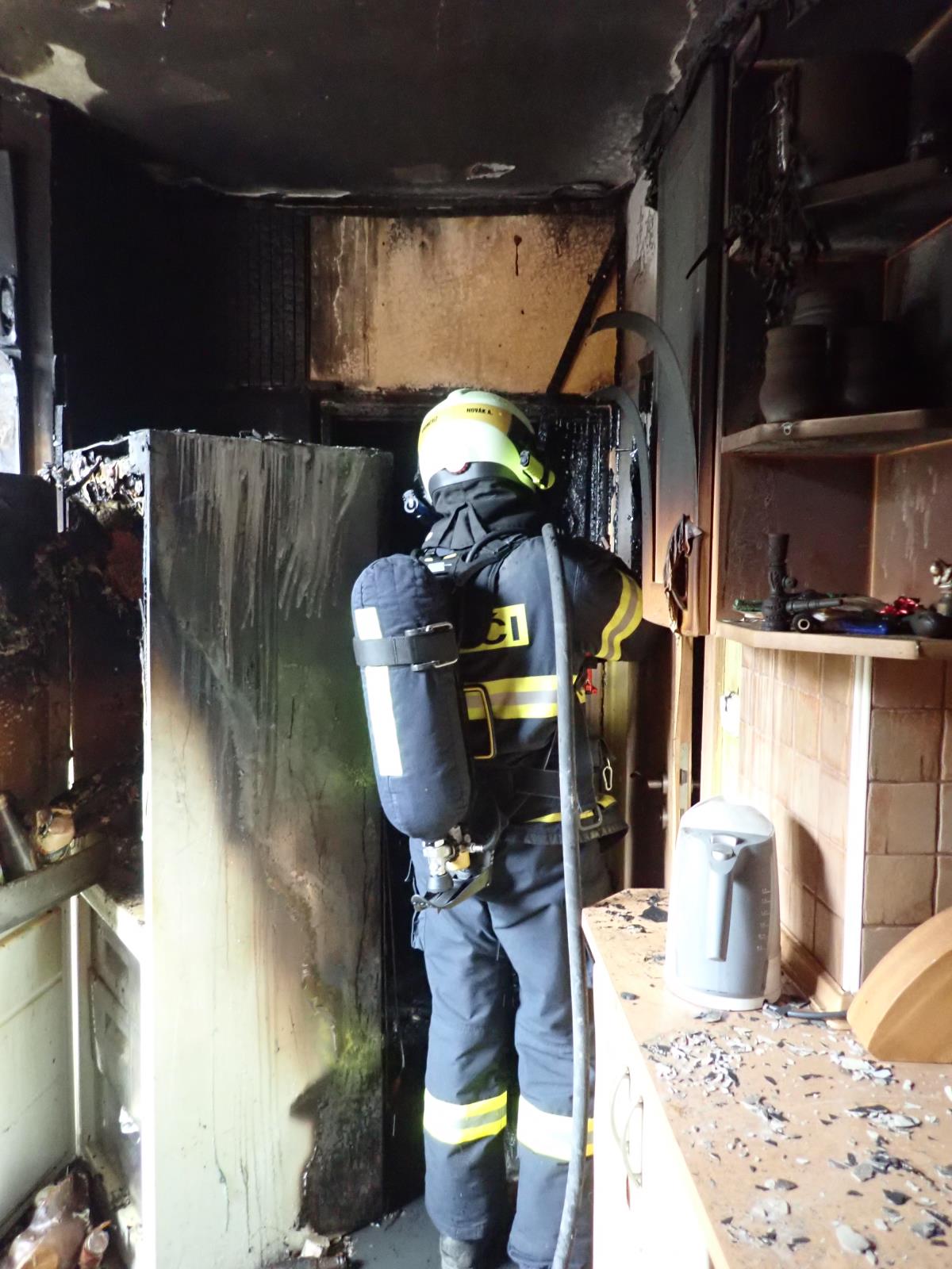 Profesionální hasiči ze stanic Kroměříž a Kojetín spolu s dobrovolnými hasiči z Kroměříže a Hulína zasahovali  v Kroměříži v ulici Spáčilova u požáru bytu v prvním patře panelového domu. Hasiči požár lokalizovali a zlikvidovali během několika minut. Na místě se nacházela jedna intoxikovaná osoba, které hasiči poskytli první pomoc a přivolali jí zdravotnickou záchrannou službu, která muže převezla do nemocnice k dalšímu vyšetření. Z domu byly evakuovány další dvě osoby, které zranění neutrpěly.