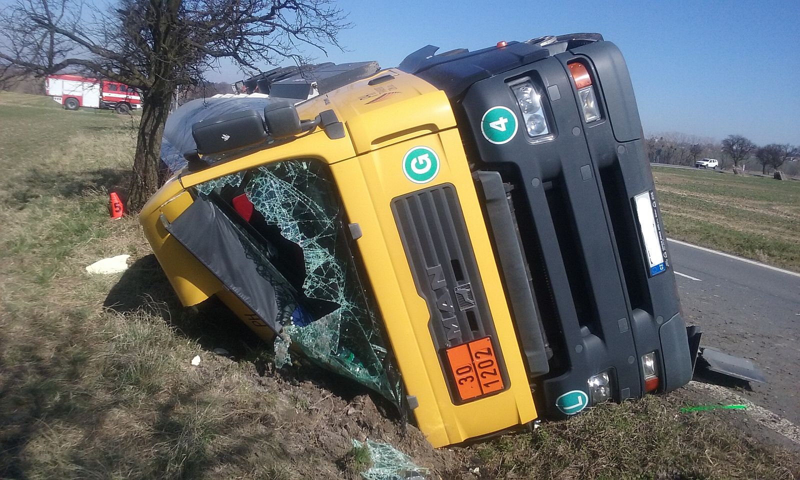 Hasiči zabezpečili místo nehody, zajistili nezbytná protipožární opatření a zkontrolovali zda nedošlo k poškození cisterny a úniku převážené nafty. Jak následně upřesnil velitel zásahu, uniklo asi 200 litrů nafty z nádrže tahače, cisterna zůstala pravděpodobně nepoškozená. Podrobná kontrola strany, na které cisterna leží v příkopu, není zatím možná.