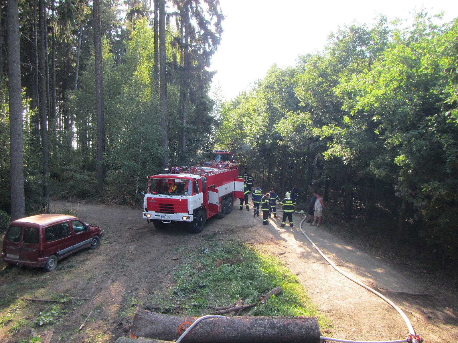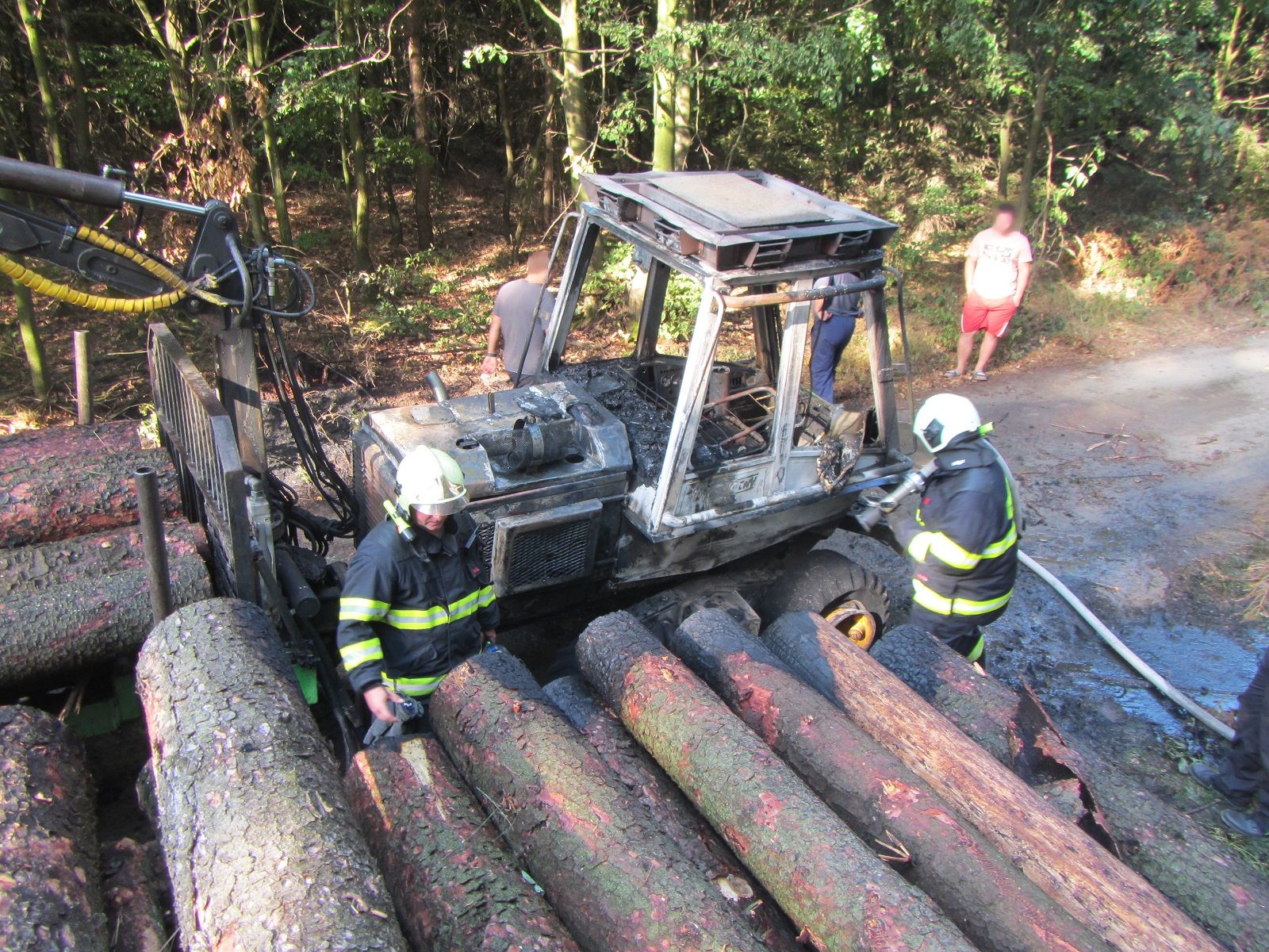 Dobrovolní hasiči z Osvětiman byli na místě jako první a požár uhasili dvěma útočnými proudy vody. Z poškozeného lesního stroje vytékaly provozní kapaliny, které hasiči zasypali sorpční látkou.