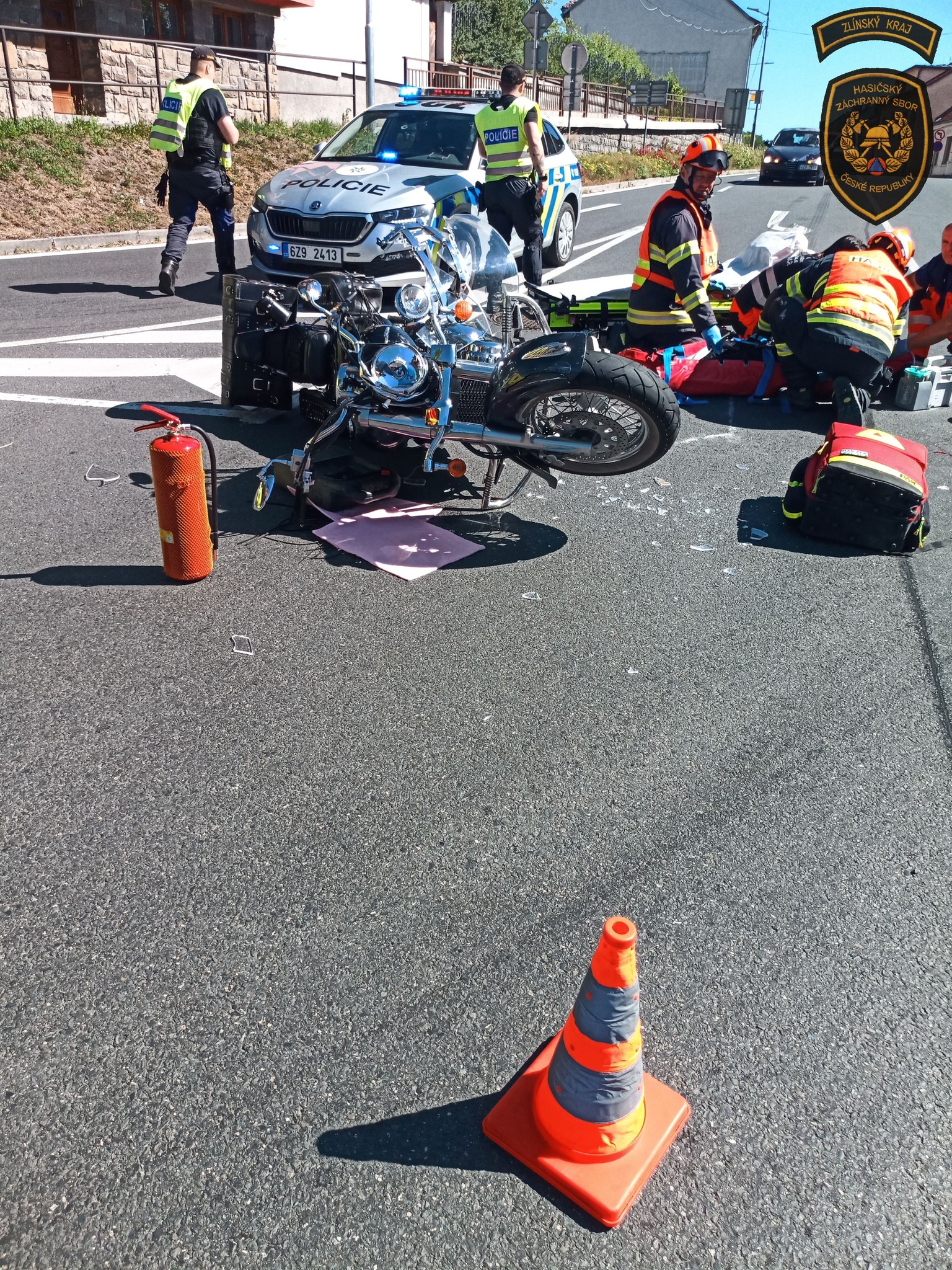 Třetí nehoda, která se stala na Zlínsku ve Valašských Kloboukách, měla závažnější charakter. Došlo zde ke střetu osobního automobilu a motocyklu. Motorkář při střetu utrpěl zranění, která si vyžádala přivolání zdravotnické záchranné služby.