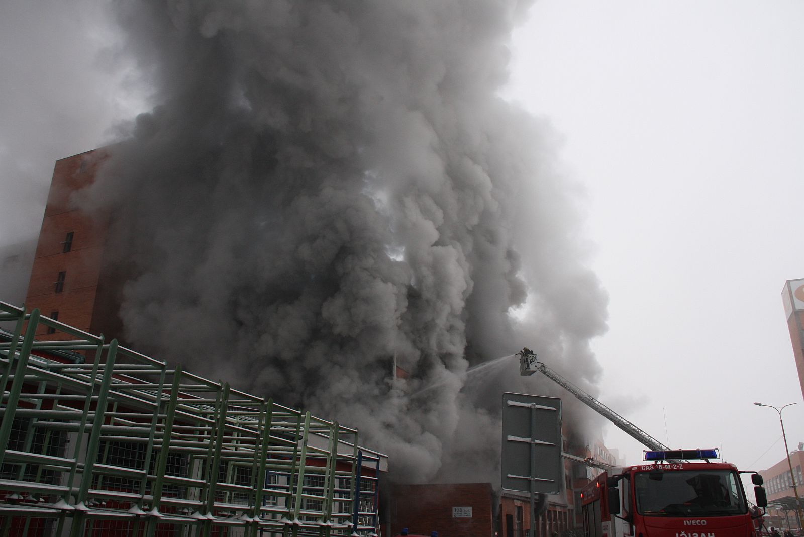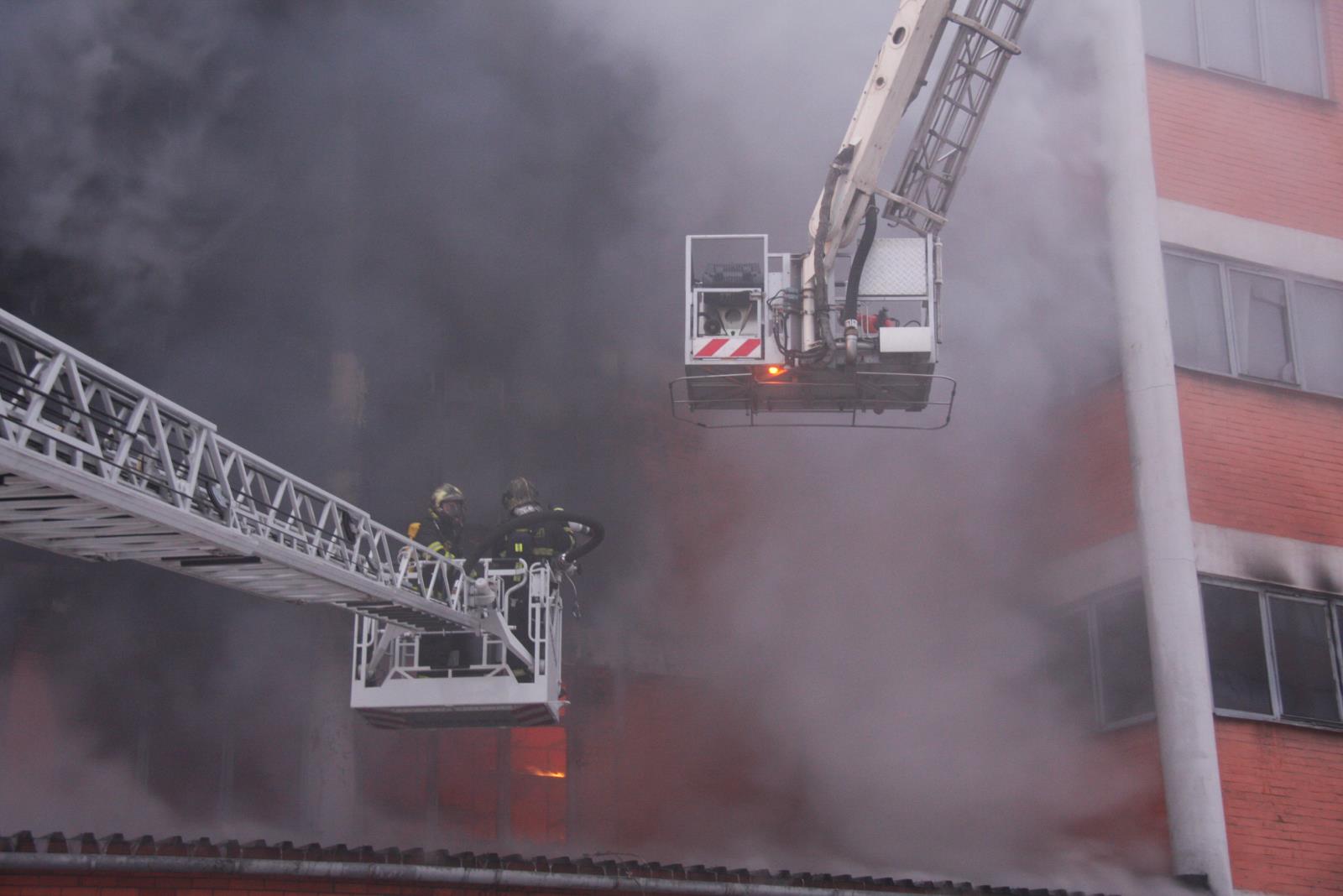 Požár ve vnitřní části objektu se za vývinu intenzivního kouře rychle šířil. Velitel zásahu proto povolal na místo události další síly a prostředky. I přes maximální nasazení všech sil se nepodařilo požár lokalizovat. Nebylo také možné určit, které prostory jsou přesně zasaženy a v jakém rozsahu. Ve 03:12 hodin byl vyhlášen druhý stupeň požárního poplachu a na místo události byly povolány další posilové jednotky. V 03:37 hodin pak byl vyhlášen třetí stupeň požárního poplachu.