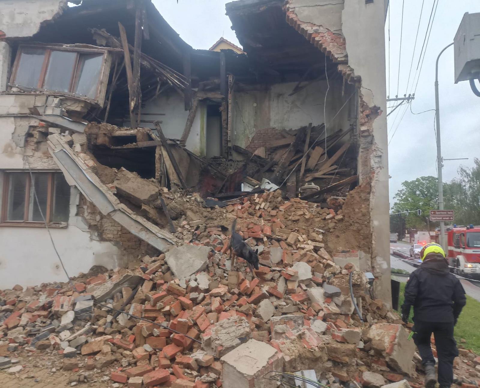 A aby toho nebylo málo, tak obdobnou situaci jako v obci Spytihněv řeší hasiči i na Uherskohradišťsku v obci Kudlovice, kde se částečně zřítil roh domu. Hasiči na místě rozebírají konstrukci objektu a provádí provizorní stabilizaci rohu domu.