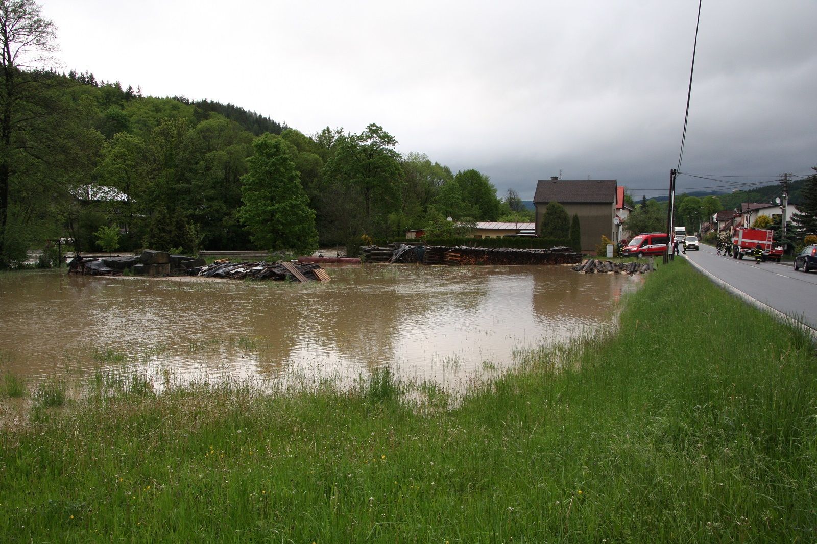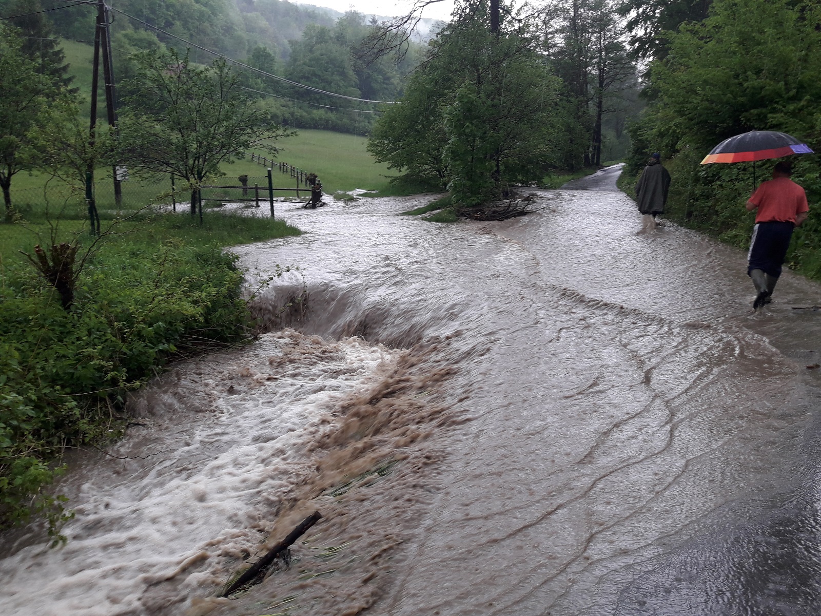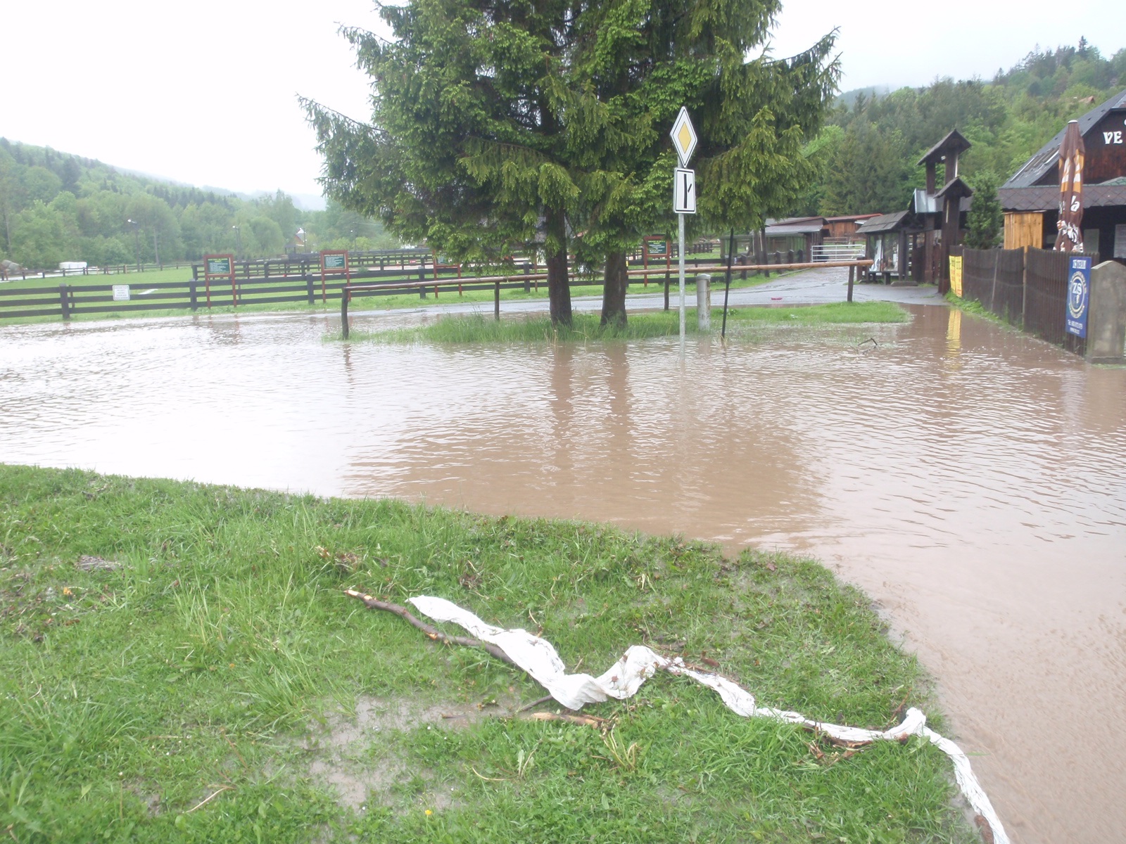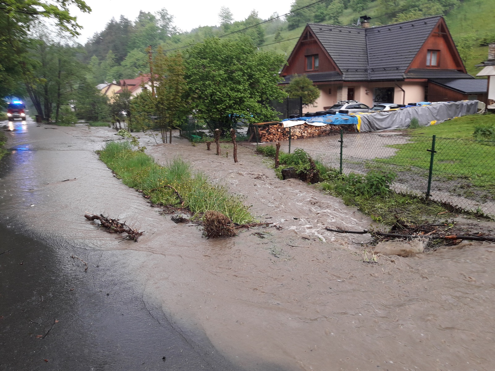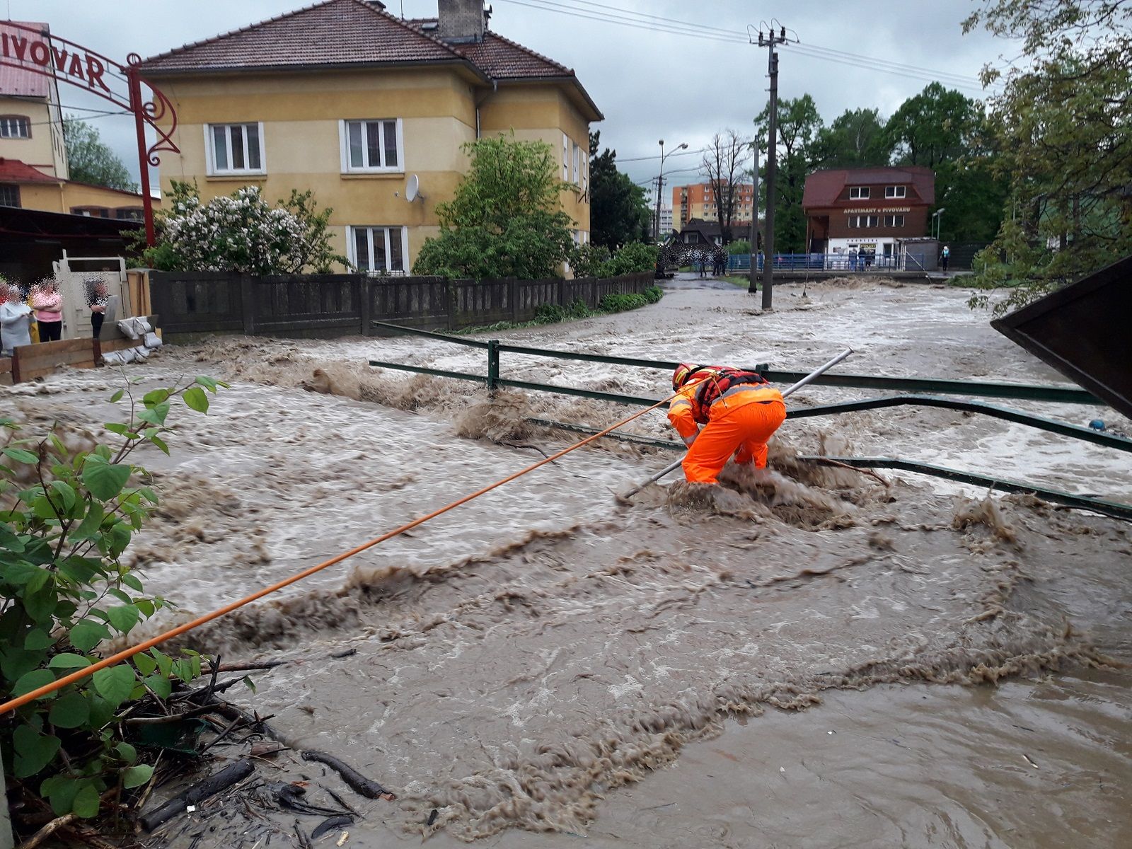 V 11:04 hodin hasiči přijali první oznámení, kdy oznamovatel sdělil, že v ulici Radhošťská v Rožnově pod Radhoštěm teče z kopce voda po silnici. Hasiči z Hasičského sboru města Rožnov pod Radhoštěm si po průzkumu vyžádali pytle s pískem, s kterými odklonili tekoucí vodu mimo silnici.