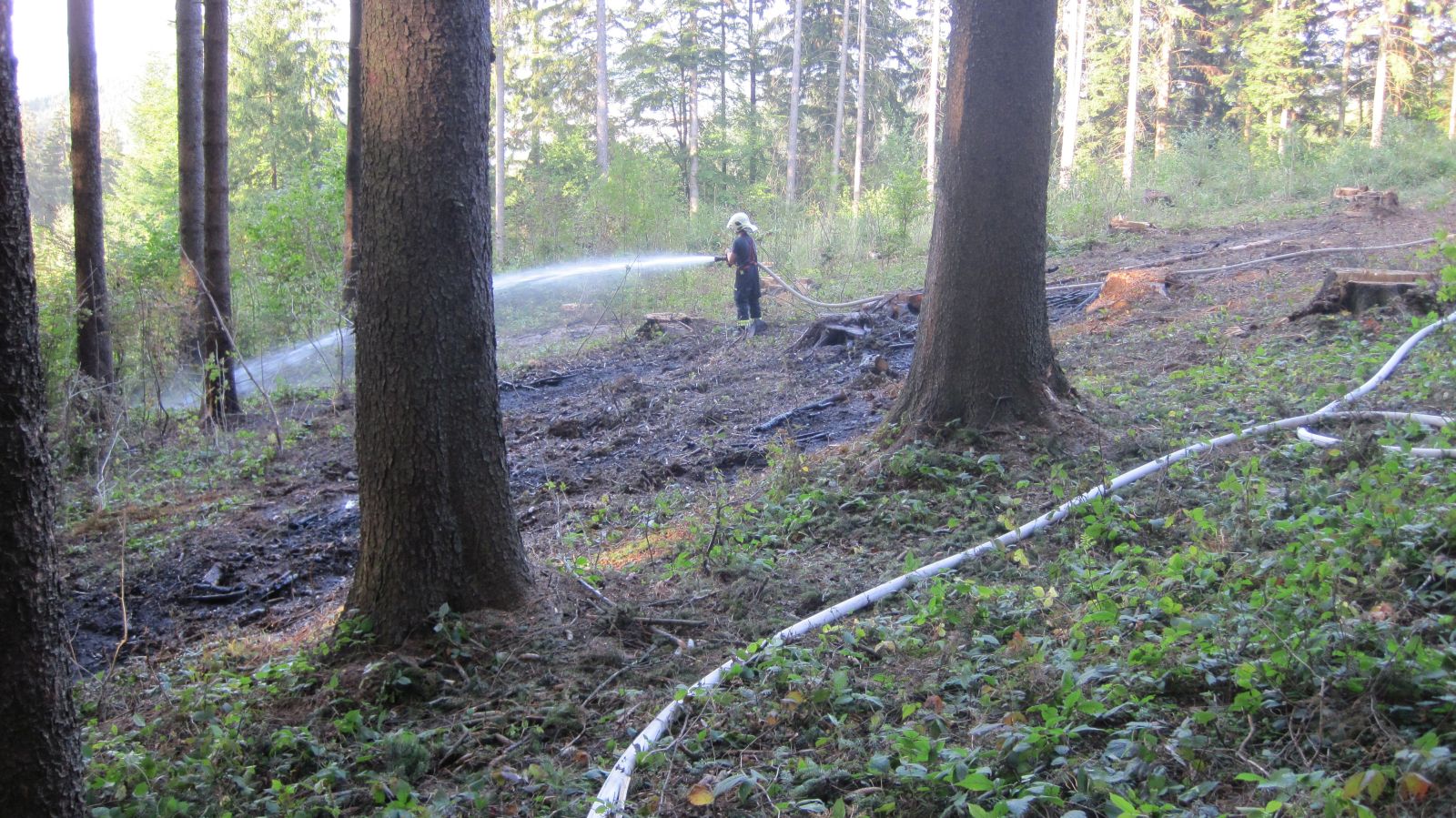 Dohašování ohnišť po pálení v lese na Vsetínsku. Hasiči jich našli 45