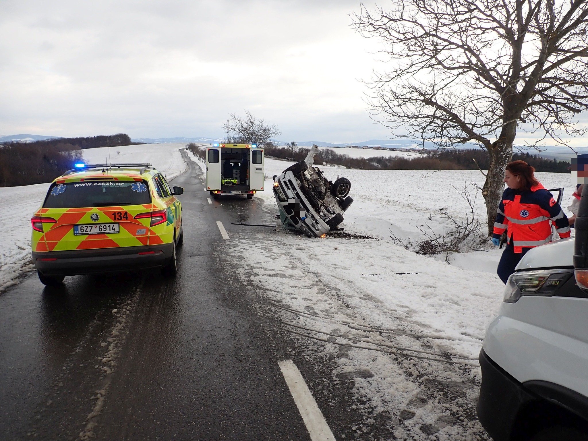 Zlínští hasiči byli v sobotu 11.3.2023 odpoledne vysláni k havárii osobního vozidla, se kterým mladý řidič u obce Doubravy na Zlínsku sjel mimo silnici, kde narazil do stromu a převrátil se na bok.