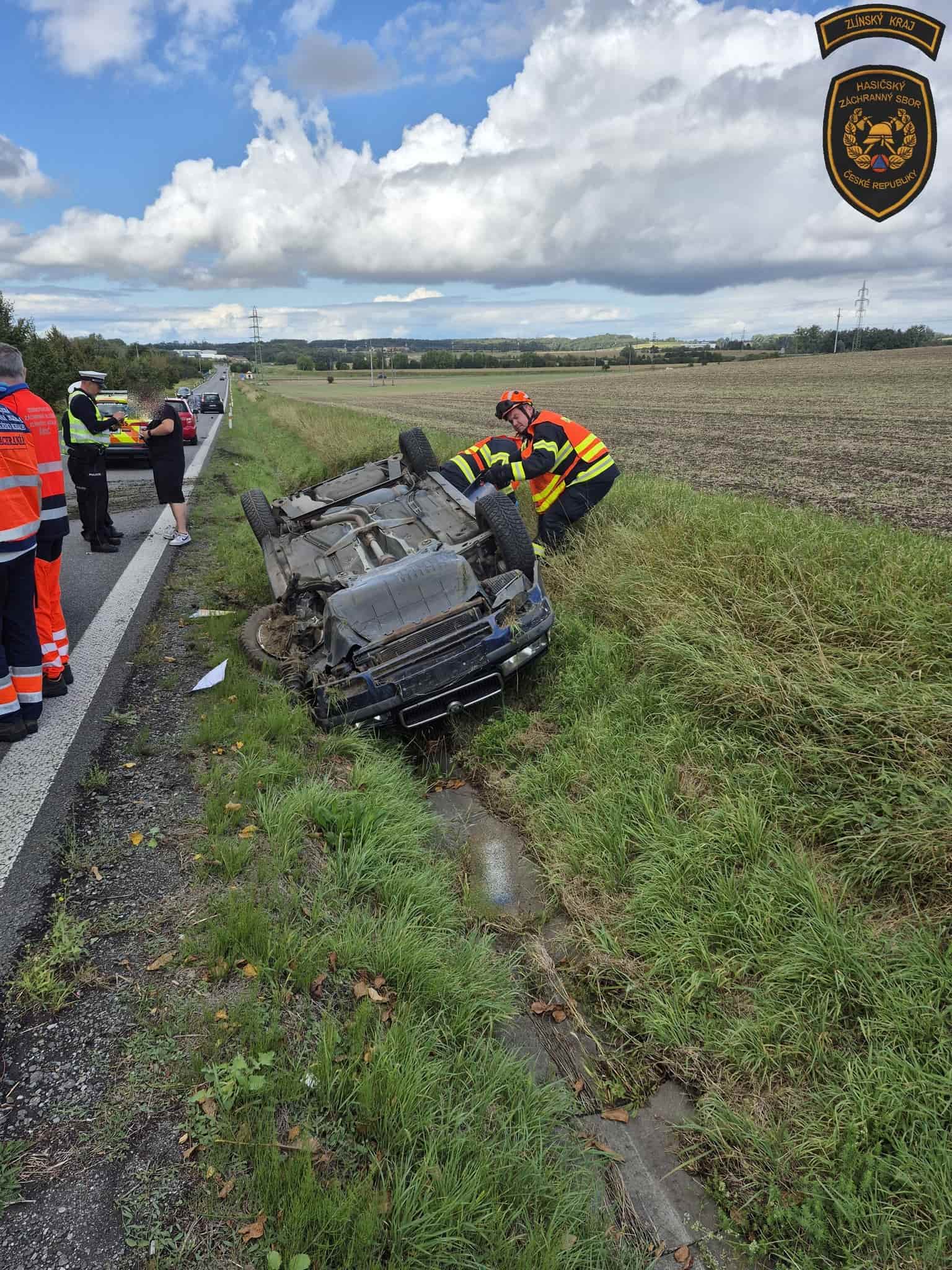 Dopravní nehoda u Otrokovic zaměstnala hasiče i záchranáře