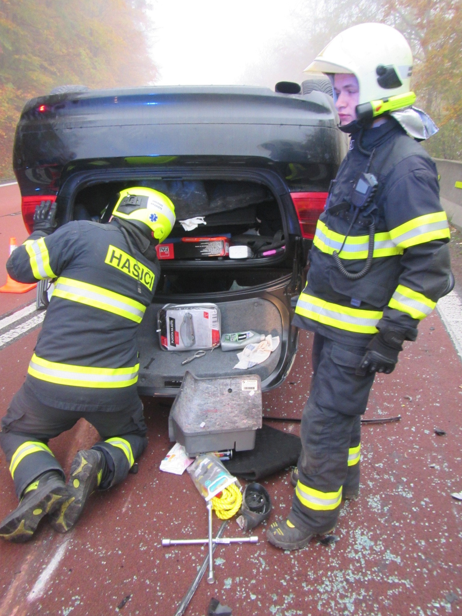 Řidič i jeho dva spolujezdci se z vozidla dostali ven před příjezdem hasičů. Jeden utrpěl zranění a skončil v péči zdravotníků.
