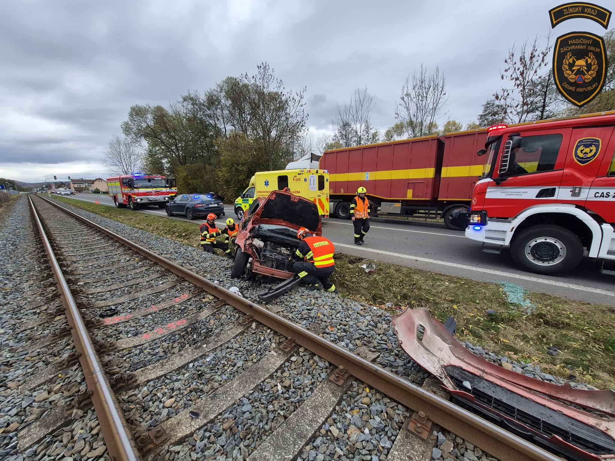 Ranní nehoda osobního automobilu v obci Zašová způsobila přerušení železniční dopravy a vyžádala si zásah profesionálních hasičů. Hasiči zajistili vozidlo proti požáru, odpojili baterii a spolu s policií usměrňovali provoz, než místo předali jednotce HZS Správy železnic.