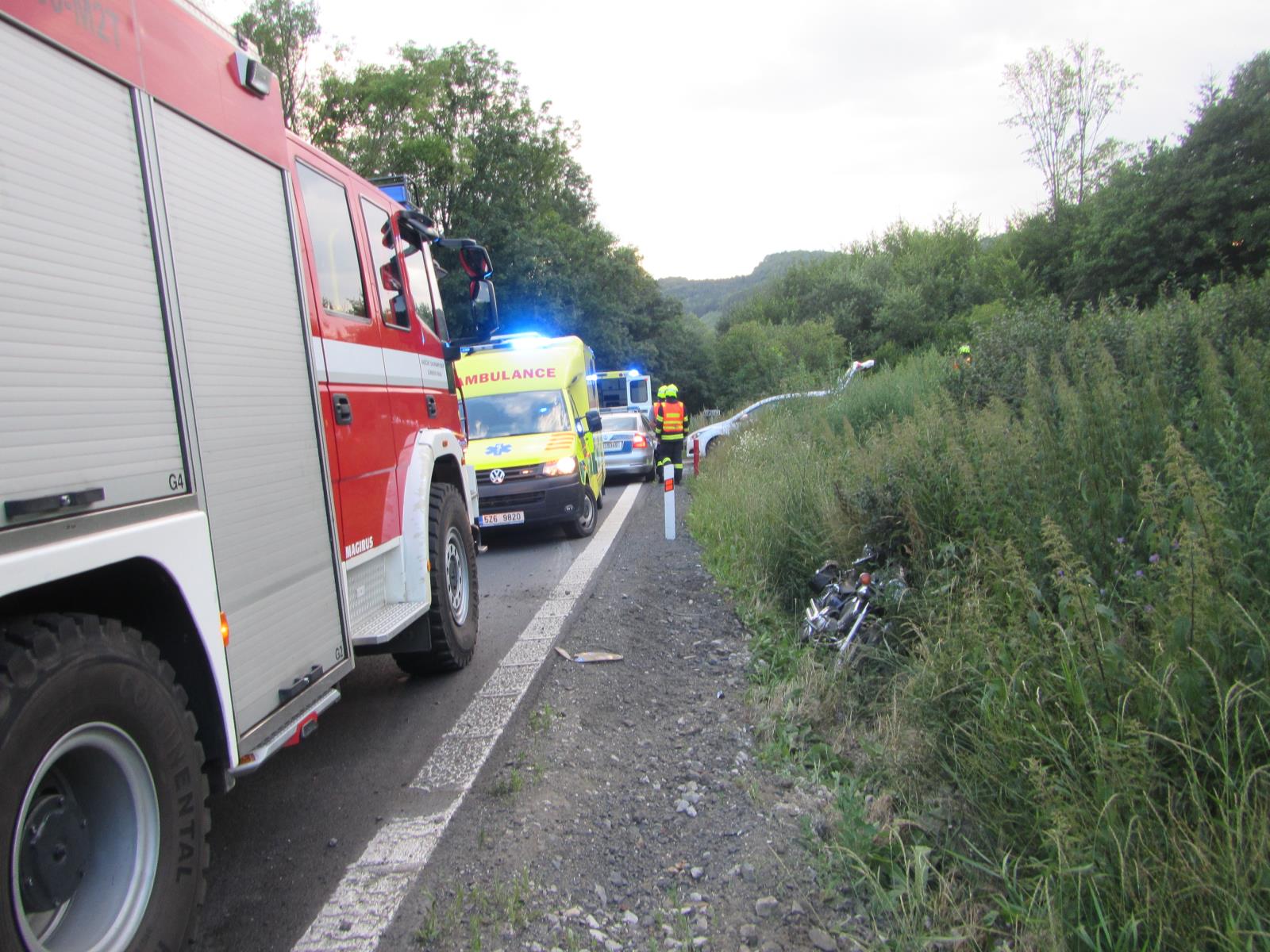 Na místě se již nacházeli záchranáři a státní policisté. Při nehodě byli zraněni dva mladí motorkáři, kteří