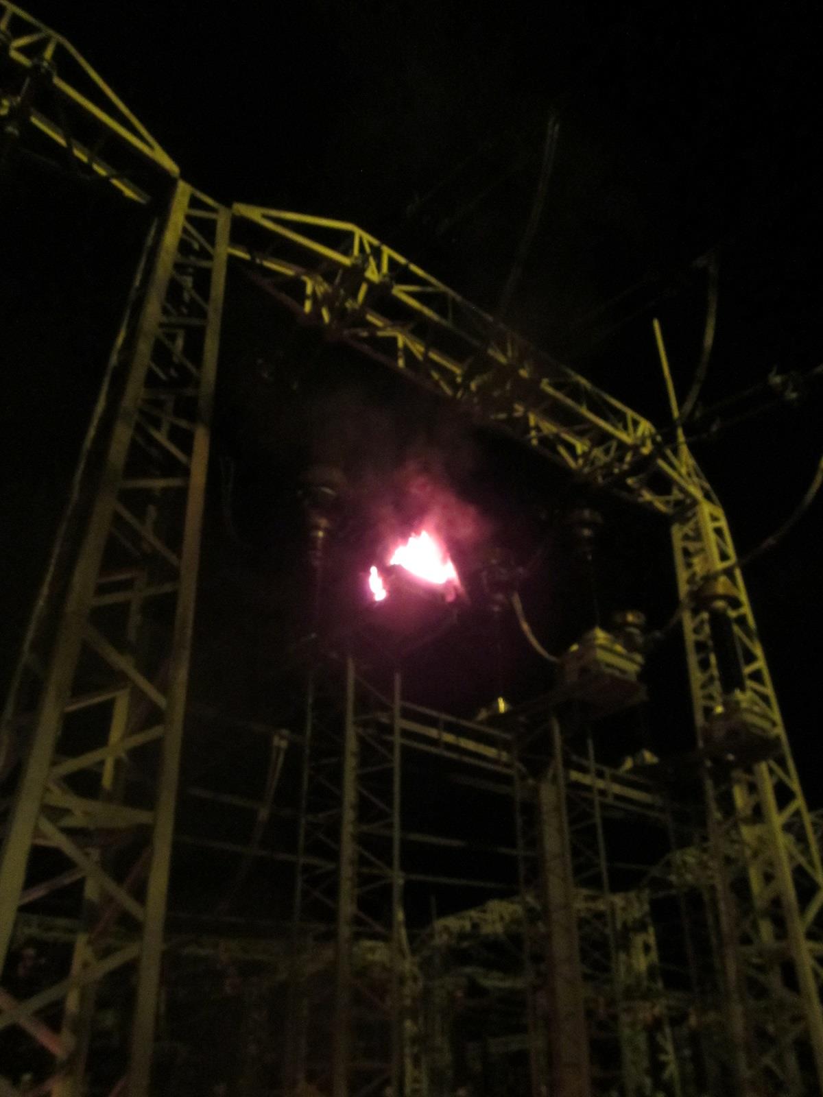 transformátoru zapálil travní porost u paty příhradového sloupu. Na místo se dostavil pracovník pohotovostní služby a s velitelem zásahu se dohodli na postupu hašení. Z důvodu možných větších škod nebyla soustava vysokého napětí odpojena a hasiči tak uhasili pouze hořící travní porost. Transformátor se nechal kontrolovaně vyhořet.
