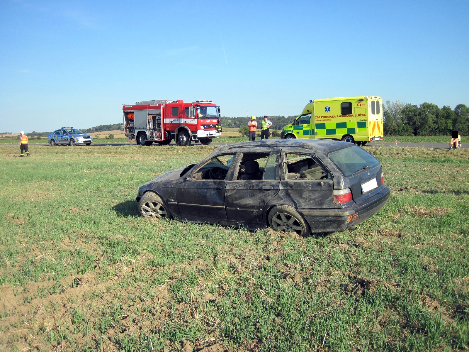 Po příjezdu velitel zásahu potvrdil, že osobní automobil značky BMW havaroval, převrátil se několikrát přes střechu a zůstal mimo vozovku v poli. Na místě se nacházely dvě zraněné osoby, které byly po prvotním ošetření předány přivolané posádce zdravotnické záchranné služby a následně odvezeny do nemocnice.