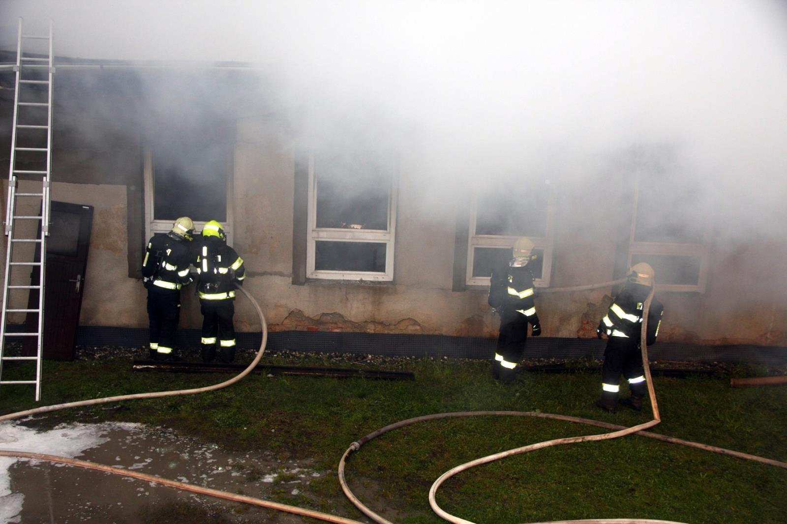 Celkem byly nasazeny tři proudy C a jeden vysokotlaký proud. Přibližně na polovině zasažené budovy došlo ke zřícení stropní a střešní konstrukce, což značně zkomplikovalo zásah. Díky rychlému nasazení jednotek se naštěstí podařilo zabránit rozšíření požáru na druhou část stavby.