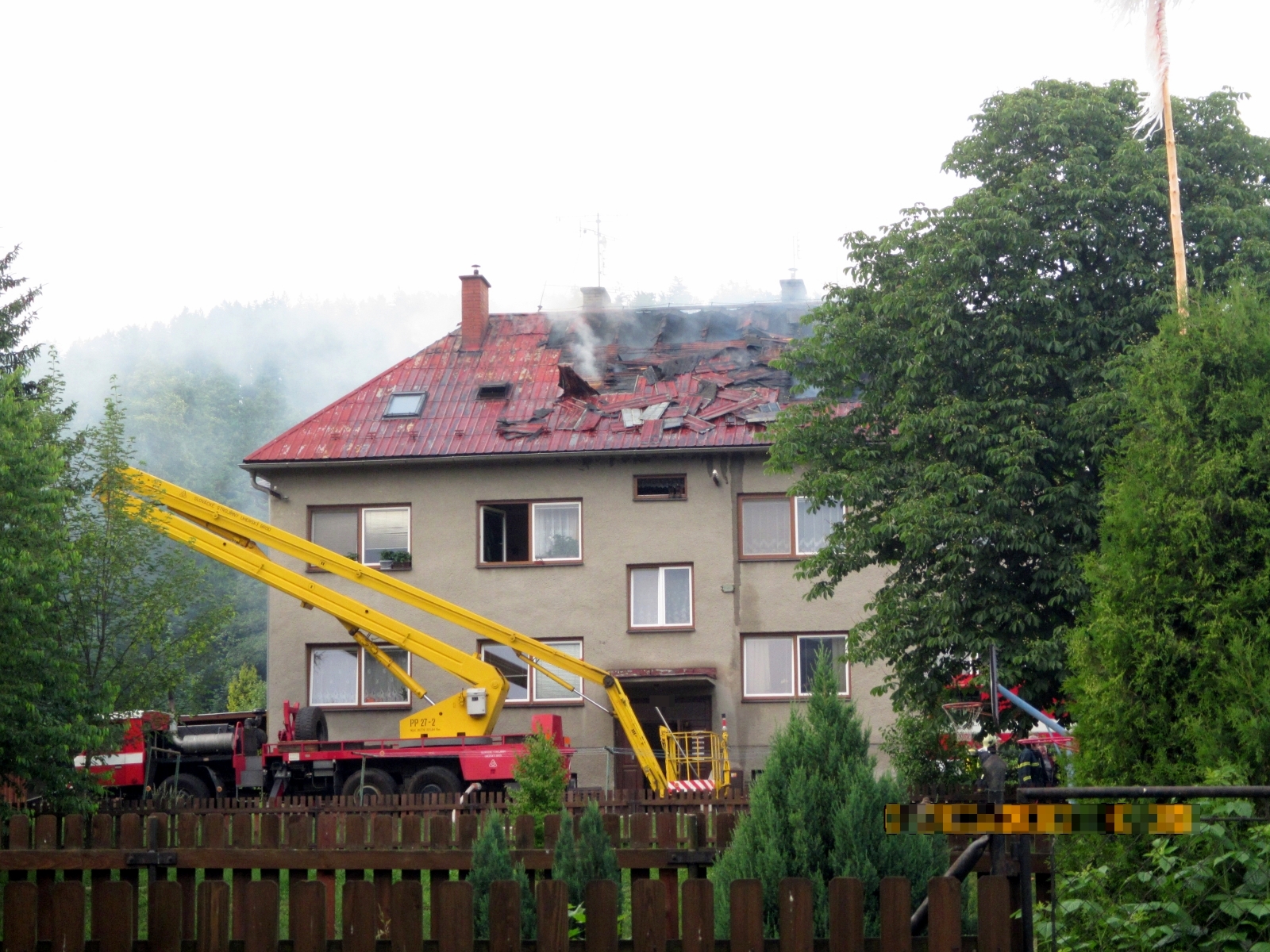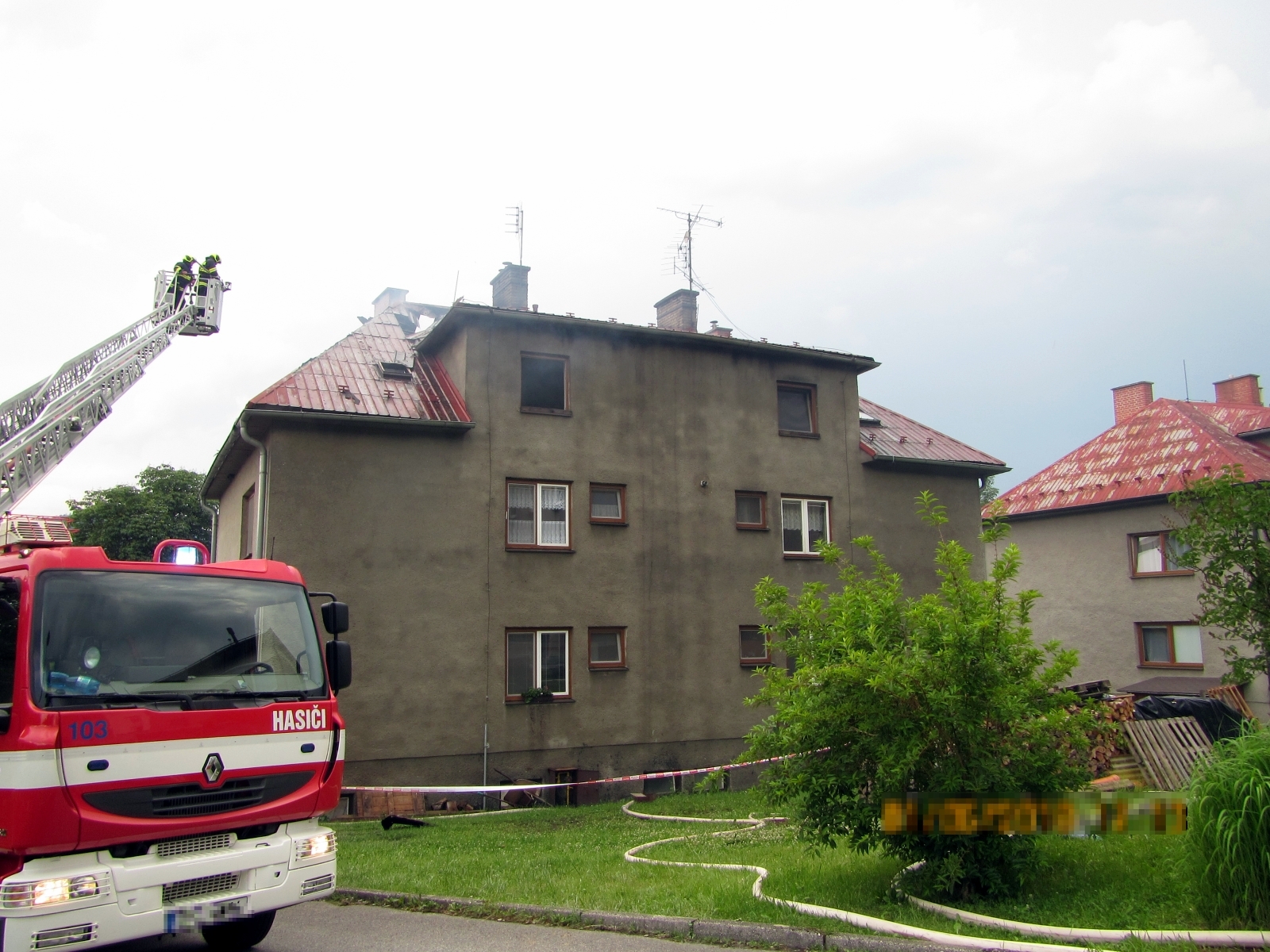 prostorem přes schodiště a nasazena byla také výšková technika. Dva obyvatelé domu se nadýchali zplodin hoření, a na místo byla proto povolána zdravotnická záchranná služba, která si je převzala do své péče.